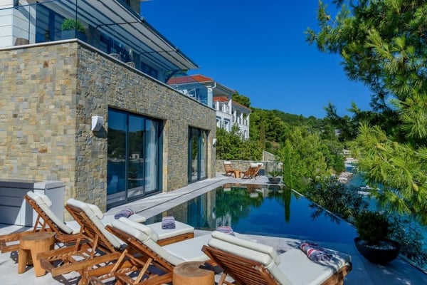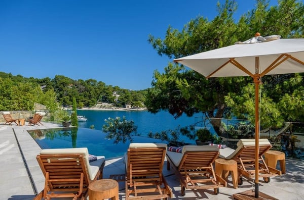 Brac has always been known as the choice for families who seek the better things in life. The largest and most accessible of the Dalmatian islands its tree-lined shores and picturesque villages have stood relatively untouched for hundreds of years. The island's 150 square miles contain an attractive combination of stunning scenery, dramatic mountains, idyllic bays and 14 beautiful villages. Emerald-blue waters and secluded pebble shores sit effortlessly beside historic buildings and natural wonders. Blessed with crystal-clear waters, the area offers the perfect conditions for life on the sea: sailing, fishing, some of the best scuba diving in the Mediterranean and just about every water sport under the sun. Beyond this, the choice is yours: from ancient historical sites, picturesque harbours, nature trails to explore, as well as a multitude of beachfront bars and restaurants to enjoy. Your busy lifestyle means every moment of your leisure time is precious, so in Villa La Cream, the impressive internal specification includes a gym, home office, media room, sauna, steam room, wine cellar and boat mooring. Villa La Cream has been designed to provide all the facilities you need to relax and escape from the pressures of everyday life. Villa La Cream is a luxurious waterfront property bordering a crystal blue bay on the south side of Brac Island. The villa is spread over three floors and consists of four en-suite bedrooms. The design combines modern lines with traditional materials to fit its surrounding environment. The layout makes the most of the majestic views by combining open-plan living with floor-to-ceiling foldable windows. Externally the villa benefits from a contemporary infinity-edged swimming pool overlooking a floating dock and moorings below. The sheltered location makes it perfect for mooring a boat during summer months and exploring nearby attractions by water.