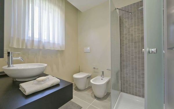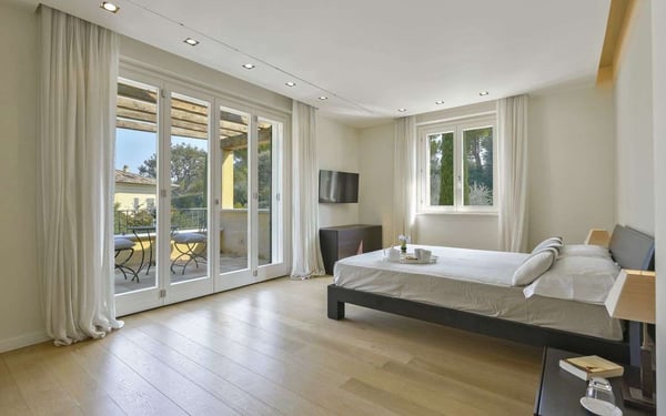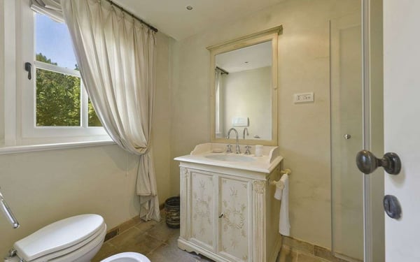 Set amongst rolling hills and ancient vineyards, the luxurious Villa Oliveto comes with 8 acres of the Oliveto estate filled with manicured gardens overlooking its very own 400-tree olive grove. With uninterrupted views of the Adriatic coast and untouched Italian landscape, here you will enjoy the slow way of life, and once you have entered the 50 metre long driveway lined with Olive trees, you won’t want to leave. This 4 bedroomed luxury villa is only just the start, because once you start to explore you will find multiple outdoor eating areas, many private corners to relax and restore, a huge architectural pool house & gym, with a 21m outdoor pool, a tennis court amidst the olive grove and our new purpose-built yoga studio that overlooks it. Villa Oliveto has 4 beautifully designed and luxuriously appointed double ensuite bedrooms. 3 are within the Villa itself, and the very beautiful Annex bedroom sits just outside of the Villa, perfect for those who want a little of their own privacy. Each of the spacious bedrooms have its own look and feel, yet all with the 5* comforts you would expect of the Oliveto Estate. Decorated in calming, natural hues, each ensuite bedroom has fantastic natural light and features a variety of views from the spectacular olive grove, to the sea view or the beautifully manicured gardens. An architect’s dream, and a traveller’s delight. A good 100 metre walk down a path from the Villa, overlooking the sprawling olive grove, you will find the beautifully designed grounds of the pool house and the twenty-one by 6 metre pool. The luxury, spacious, modern pool house is a concrete minimalist haven from the sun, housing a kitchenette, bar, eating area, gym, two washrooms and two showers. The pool house comes complete with retractable floor-to-ceiling windows so if you would like to use this as a yoga studio in the winter or summer months, you can. CIN: IT043013C2YYW6CSFJ