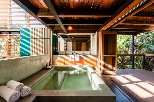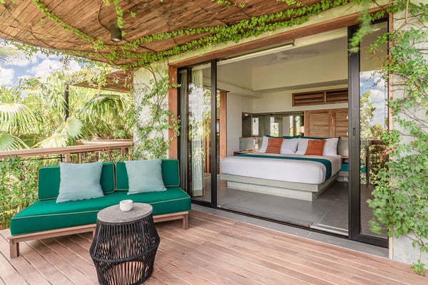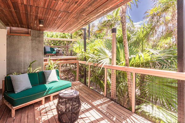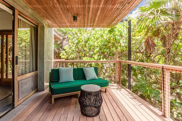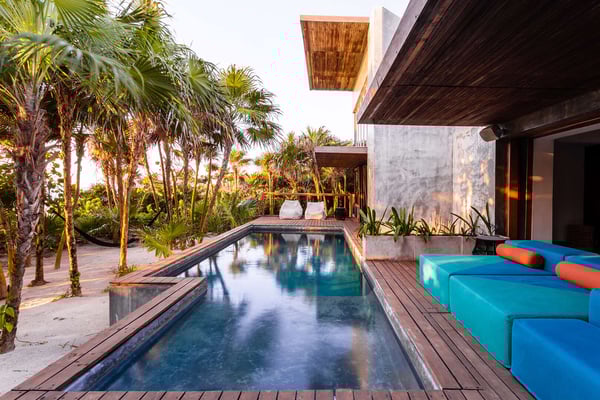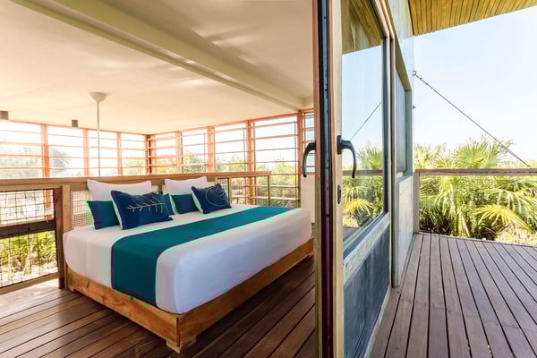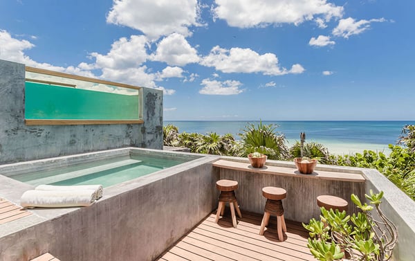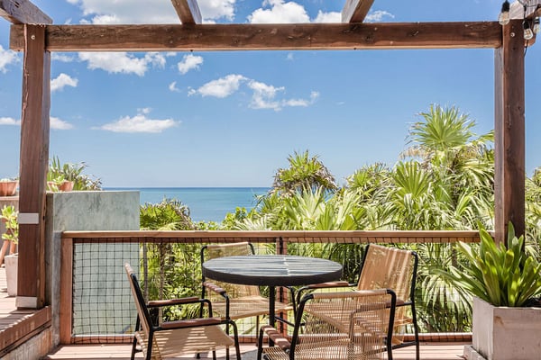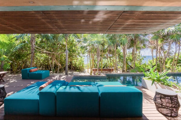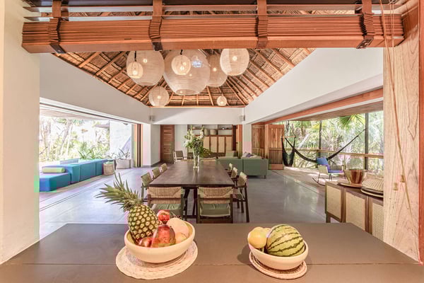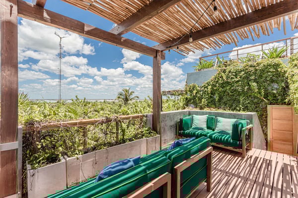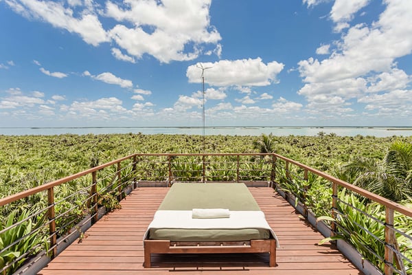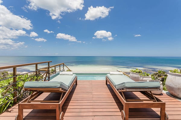 The roads in Sian Ka'an are unpaved and therefore distances and times may vary depending on the season and road quality and conditions. Staying at Casa Mam is making a journey to the very soul of nature. This luxury beachfront villa in Sian Ka’an Biosphere Reserve, one of Mexico’s most pristine places, combines unparalleled comfort, total seclusion, and stunning natural surroundings Casa Mam was designed for you to coexist with the environment. Its modern tropical architecture fuses the tastefully decorated indoor spaces with the lush outdoors. The elegant lounge and dining areas seamlessly integrate with the oceanfront deck and climatized pool on one side, and with a jungle deck on the other. Beyond the main palapa, the natural dunes, with their palm trees and snug hammocks, are the prelude to a breathtaking private stretch of white sand beach. Climb onto the top level and you’ll find mesmerizing 360-degree views of the 4.5-acre property, with the lagoon on one side and the Caribbean Sea on the other. The rooftop deck, an ideal spot for morning yoga and watching spectacular sunsets, also boasts an infinity pool where you can spend hours relaxing and contemplating the ocean. Up to 12 guests can sleep cozily in the property’s four spacious bedrooms. The master bedroom is equipped with its own sento hot bath and has direct access to the main pool and deck, while the main and deluxe rooms, all exquisitely furnished, enjoy spectacular views from their terraces. Due to its location in a protected natural area and World Heritage Site, Casa Mam uses the latest advancements in technology to minimize energy and water consumption. The modern appliances are wind and solar-powered, while rainwater is harvested to meet most of the guest’s needs. And although A/C is available, the residence is designed to maximize airflow and stay fresh and comfortable all year round. This luxury beachfront villa in Tulum -world-famous restaurants and nightlife are just minutes away - is the ultimate retreat in communion with nature. Once you have experienced this paradise, you’re sure to return home with a deep love for the natural world. Please note, due to Sian Ka’an being a protected reserve, it is not permitted to bring external ATVs, water sports equipment such as kiteboards, or audio equipment. It is also forbidden to fish, in order to protect the endangered sea life. Additionally, pets are not allowed.