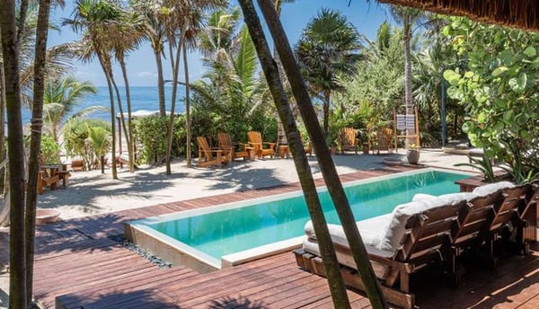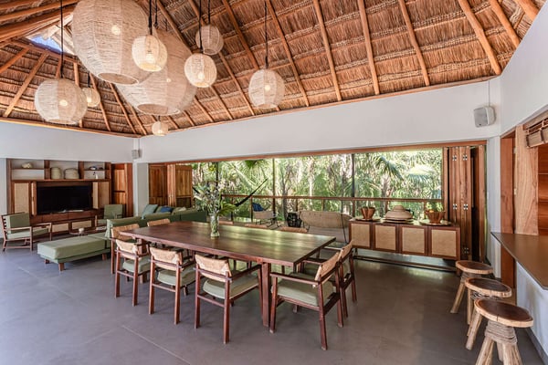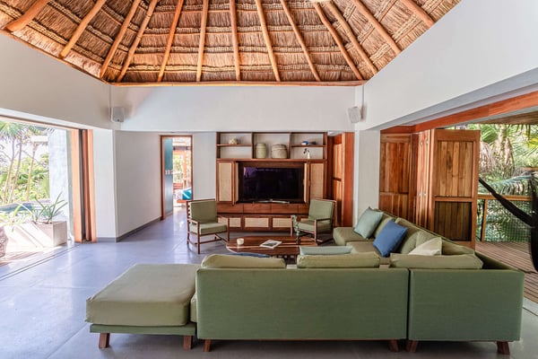 • A mandatory refundable damage deposit of $2,000 USD applies • A food deposit of $1,000 USD for supplies, food and beverages is required minimum 7 days prior to arrival • There is an entrance fee to the Biosphere Reserve of Sian Kaan that is not included in the rate. This fee is $12 USD per person per day and it’s paid at the entrance arch by cash • Rates are based on double occupancy • Additional guests exceeding double occupancy (9 + 10) are as follows: $80USD + taxes in low and mid season, $100USD + taxes in high season and $120USD + taxes per guest, per night • Please note, due to Sian Ka’an being a protected reserve, it is not permitted to bring external ATVs, water sports equipment such as kiteboards, or audio equipment. It is also forbidden to fish, in order to protect the endangered sea life. Additionally, pets are not allowed. • This villa is located within a national park and accessed via a dirt road, which varies in condition depending on the season. Four wheel drive vehicles are required. • Strictly quiet hours in the community after 10pm (no loud music allowed) • Please be aware that, due to warming weather and fluctuating ocean currents, the Riviera Maya may experience the presence of naturally occurring seaweed during the hotter months of the year • During the turtle nesting season, the lights on the beach and pool areas will remain off to avoid disturbing their natural behavior. Please, if you spot a turtle as they lay their eggs, do not approach them. You are welcome to watch them from a distance, but remember to keep all light sources off and avoid making any noise