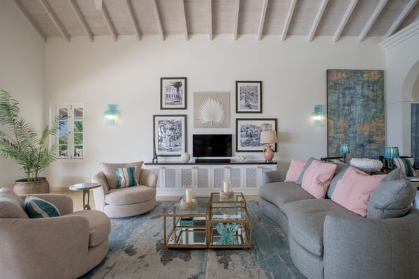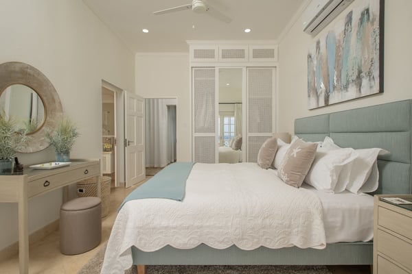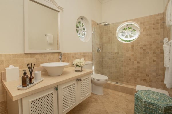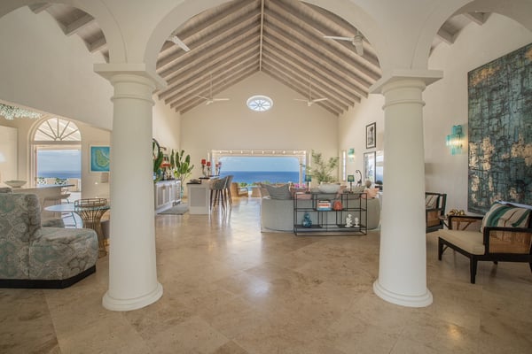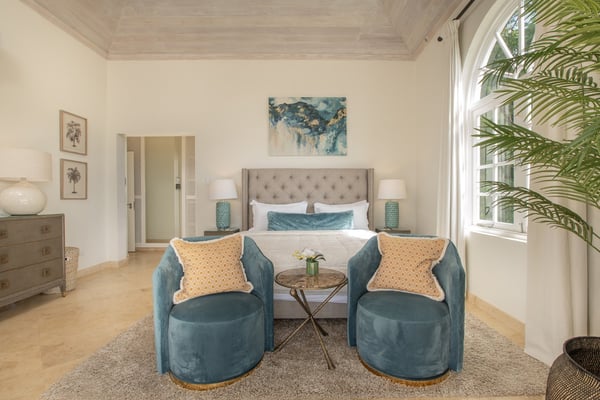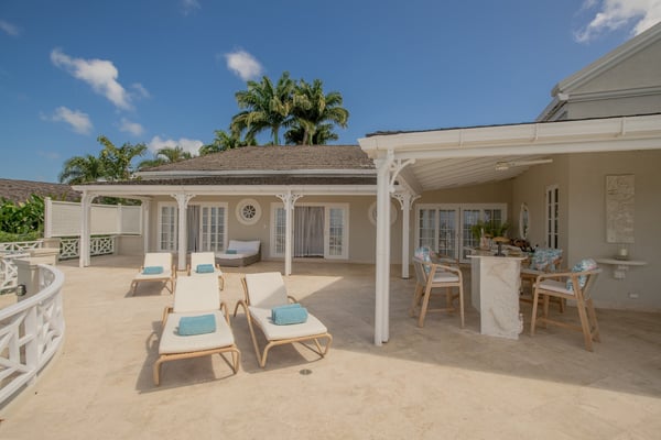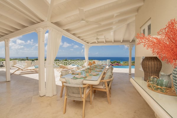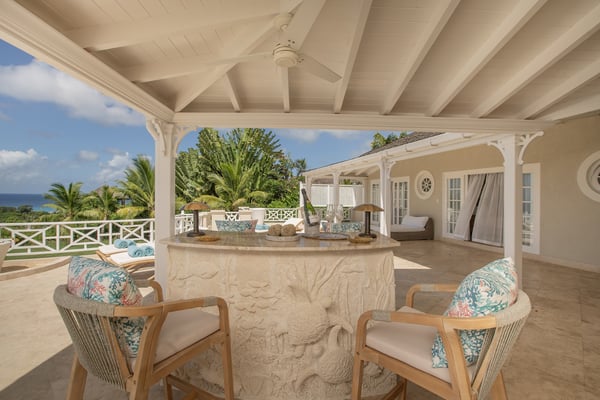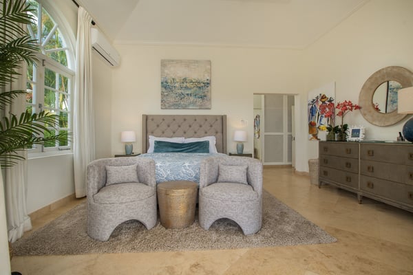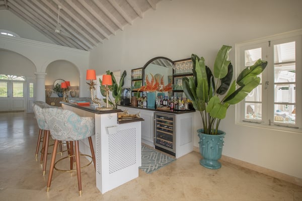 Behold the majestic Villa Aquilae, a masterpiece of architectural design perched upon just over half an acre overlooking the illustrious Platinum Coast of Barbados. This exquisite abode boasts a single-story layout, exuding an aura of timeless elegance. Prepare to be mesmerised by the breathtaking sunsets that grace the western horizon each evening, as you indulge in the luxury of this remarkable sanctuary. The villa's private pool terrace offers an idyllic setting to bask in the gentle ocean breezes, soak up the abundant sunshine, and marvel at the celestial display of twinkling stars that grace the night sky. Nestled strategically between the vibrant locales of Speightstown and Holetown, and a mere five-minute drive to the pristine shores of Reeds Bay Beach, this oasis is the epitome of convenience and seclusion. Experience the epitome of island living at Villa Aquilae, where paradise awaits. With room for 10, this stunning five-bedroom villa that exudes luxury and elegance. Prepare to be captivated by the breathtaking scenery that surrounds this property. As you step onto the enormous pool terrace, you'll be greeted by the sight of a magnificent oval, infinity-edge pool, nestled amidst lush palms and gardens. The terrace itself stretches along the front of the villa, providing ample space for relaxation and soaking up the sun. Indulge in the ultimate outdoor dining experience on the covered verandah, conveniently connected to the great room, kitchen, and bedrooms. For those seeking tranquility, there are several sundecks furnished with comfortable lounges, allowing you to unwind and bask in the sun's warmth. Step into this magnificent villa and be greeted by a grand and legendary great room that effortlessly connects with the terrace through its expansive double-wide doors. Indulge in the pleasure of reclining on the lavish oversized banquet while immersing yourself in the breathtaking scenery and refreshing sea breeze. The ceilings, adorned with pickled wood, soar high above, creating an airy ambiance, while the cool terrazzo flooring throughout the entire villa ensures a comfortable and laid-back atmosphere. The design and decor exude an elegant and serene vibe, with a soft and creamy color palette complemented by natural wood and stone accents. Prepare to embark on a journey of absolute relaxation and tranquility. Just a few steps away from the great room, discover a modern kitchen equipped with top-of-the-line appliances and a convenient walk-out design, perfect for satisfying those late-night cravings or enjoying a peaceful morning coffee, as well as preparing delightful meals at any time of the day All five exquisite bedrooms are meticulously crafted to provide a sanctuary of tranquility. These opulent suites boast a pristine double bed adorned with immaculate white linens, ensuring a blissful night's sleep. Immerse yourself in sophistication as you step into the modern, marble ensuite bathrooms, seamlessly blending elegance and functionality.