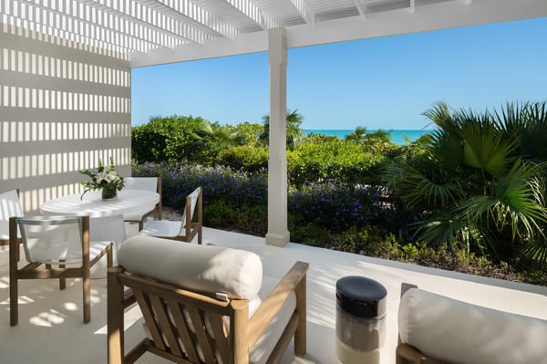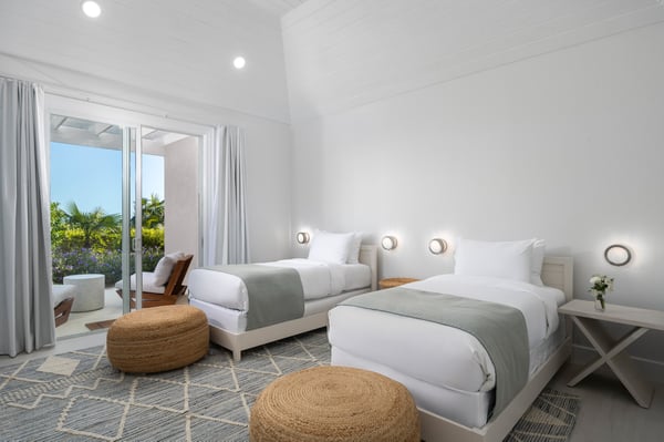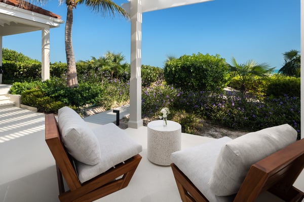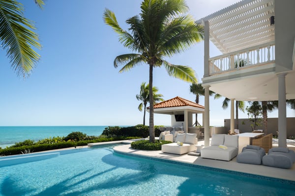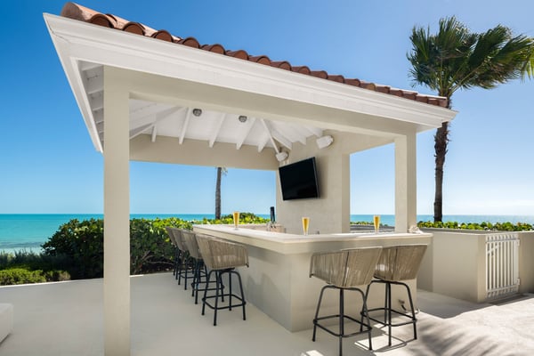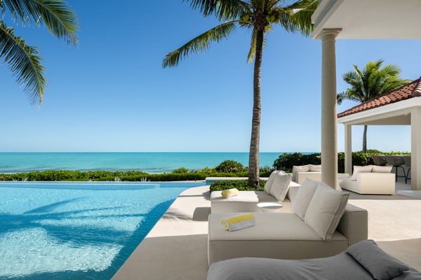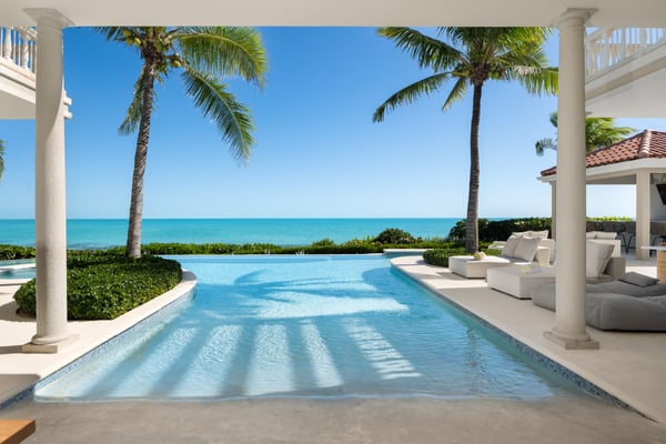 Nearby construction may result in noise disturbances. For further details on how this might affect your stay, please reach out to a Rental Escapes villa specialist. Located in Long Bay on the southeast coast of Providenciales, this extra special villa boasts panoramic views, soft sands and striking sunsets on the doorstep. Outdoor entertaining is a must, with spaces for dining and socializing designed to maximize the ocean vistas. A separate guest house with an outdoor deck and palm-fringed pool also offers extra flexibility and privacy for groups and families. Alongside all the usual 5-star features and facilities for entertainment, respite and relaxation, sports lovers also benefit from the use of onsite tennis and basketball courts. Privacy and exceptional comfort come as standard, with Haven House’s classically styled interiors the ideal retreat after a day in the sun.