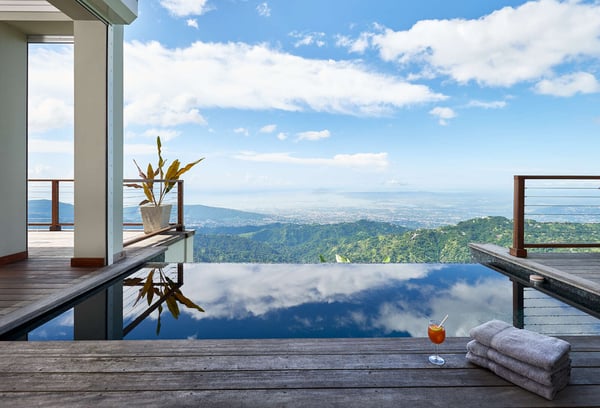 This home does not have air-conditioning A beautiful family home built in 2017 to include all of the luxurious amenities to make your vacation a memorable and relaxing one. Located in the beautiful Blue Mountains, a five-bedroom home Wine Down, is three floors of beautiful living space facing glorious views of the capital city. A large wrap-around verandah allows for both indoor and outdoor seating, with so many choices of areas to enjoy, you will leave completely rejuvenated and full of wonderful memories. A Heated Plunge Pool gives you the option of cooling off after a long walk or relaxing with a glass of wine in the evening while enjoying the city lights. For evening fun, we have a fully outfitted games room in the basement that includes a Pool Table and Table Tennis. The basement opens out onto a lovely green area. A butler, Chef, and housekeeper are on staff 24 hours a day, as well as our groundsman during the day.