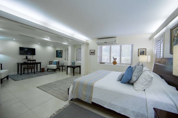 A beautiful four-bedroom villa which opens out onto a lovely wooden deck with an infinity pool overlooking panoramic views of the Caribbean Sea. One of Jamaica's most beautiful beaches, Silver Sands Beach is only a few minutes walk or a quick butler-driven Golf Cart ride away within our gated community. One of Jamaica's most beautiful beaches is only a few minutes walk or a quick butler driven Golf Cart ride away within our gated community. Enjoy relaxing on the beautiful white sand beach, swimming in the crystal blue sea or hanging out at the beach bar… maybe you will even be lucky enough to see a turtle hatching as Silver Sands boasts a large number of active Turtle nests. Silver Sands also has a great jogging trail, beach gym, a tennis court available to you. Central to some of Jamaica’s most famous attractions and golf courses.
