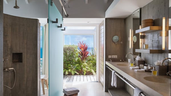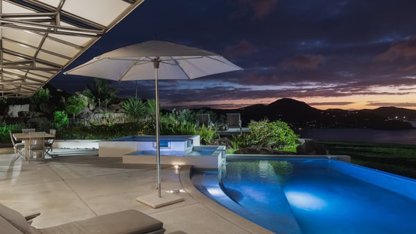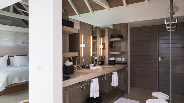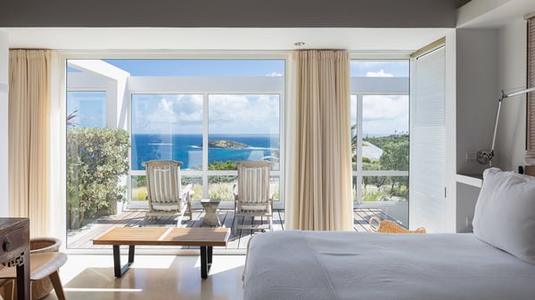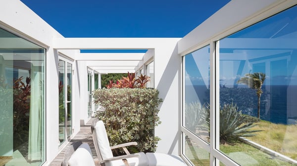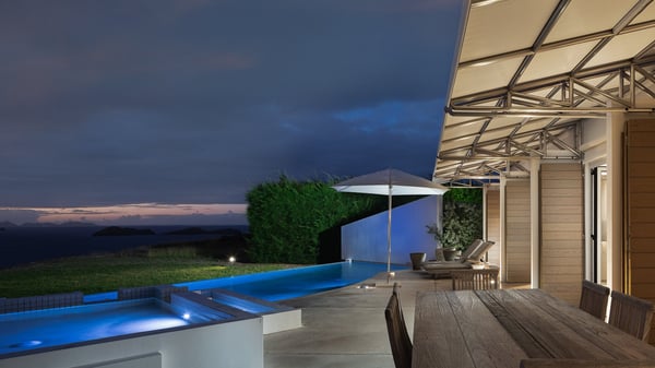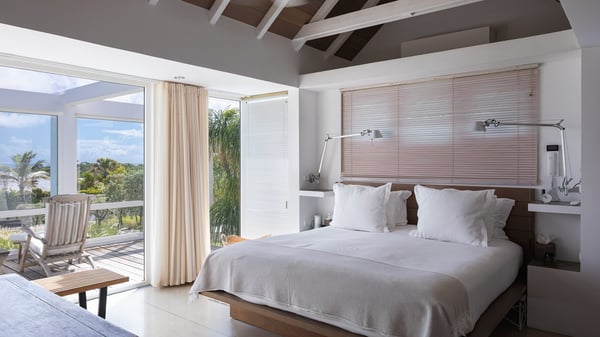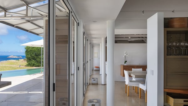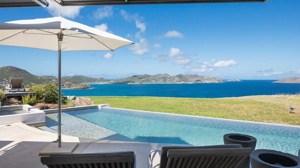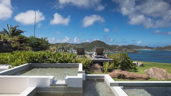 Villa Sea Weed is a two-bedroom property ideally located in Pointe-Milou in front of the ocean and the glowing sunsets. Spacious and very private, this vacation rental home offers bright spaces in a luxurious scenery. With a lovely swimming pool and two bedrooms, villa Sea Weed is the perfect place for a four-people dream stay in the Caribbean. Villa Sea Weed is a contemporary and luxury property in St-Barths with stunning ocean views. Its elegant living room features bay windows through which you’ll admire the deep-blue ocean. There is a comfortable lounge with white sofas and armchairs for pleasant relaxing moments in the gentle Caribbean, close to the indoor dining room for ten guests. The kitchen is well equipped and has a breakfast bar located at the back to talk over a coffee, as the trade winds gently blow through the luxuriously furnished living space in St-Barths’ bright light. At the front, the terrace opens onto the amazing view over the ocean, the neighbouring islets, and the evening glorious sunsets. Under the covered area, the outdoor dining room welcomes guests to dine al fresco, as well as the second outdoor dining table located close to the barbecue. A few steps ahead on the wooden deck, you'll enjoy the beautiful swimming pool (which is heated in winter) featuring small, shallow pools above the main one. There are lounge chairs perfect to relax in front of the ocean view. In addition, you’ll love discovering the small wooden path which leads to a promontory with deckchairs in front of the breathtaking ocean view. The property's garden provides a lovely vegetal breath to the idyllic scenery, in an exclusive and very private atmosphere. The holiday rental villa Sea Weed consists of two air-conditioned bedrooms with king-size beds and en-suite bathrooms. Both bedrooms are bright and open onto private, glass-protected terraces with breathtaking ocean views and furnished with armchairs. The view over the villa's tropical garden is most relaxing and peaceful in front of the amazingly beautiful ocean. In the outstanding beauty of St-Barths in front of the glowing sunsets, villa Sea Weed is the perfect place for an unforgettable Caribbean stay for four.