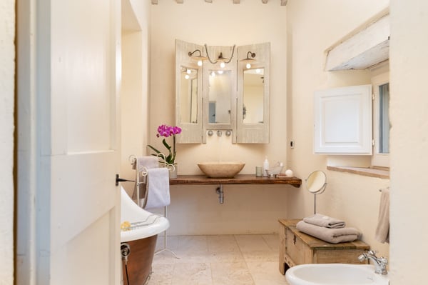 Villa Vetrichina was originally a farmhouse built at the end of the 18th century. It has undergone a lot of adjustments throughout the years until 2012 when a careful renovation was led following modern top-notch comfort and design. Natural materials, sourced locally, guarantee a high housing quality. Surrounded by an unspoiled natural landscape, it’s just a short distance from San Casciano dei Bagni village, the most charming in Val d'Orcia. Villa Vetrichina nowadays welcomes an intercontinental clientele, mainly from the U.S.A. and also from Asia and India. In autumn and spring thermal waters are a big draw attracting Italian clientele fond of this marvelous corner of Tuscany where time has a special dimension and natural landscapes are unique. Villa Vetrichina is open all year round and can be rented in its entirety. In the festivities the atmosphere is truly magical, our highly qualified staff provide first class service and hospitality. CIN: IT052027B4LOMDH5XE