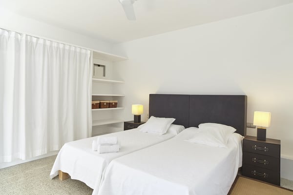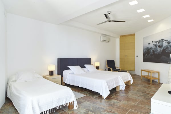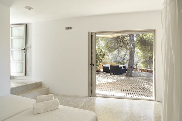 At only 5 minutes from the famous beach of Cala Salada on the west coast of the island, and very close to the small beaches of Cala Gracio and Cala Gracioneta, this property offers complete privacy to enjoy the beautiful gardens and pool area with stunning views of the sea and sunset. Spanning over three immaculate floors, Villa Solana provides a wonderfully spacious and airy home for your holiday. Enjoy alfresco dining around the delightful wooden table or relax on a soft white sofa under the shelter of a shady awning. Through the spectacular glass doors, you will find indulgent open-plan living areas and a sensational kitchen. Under your feet, polished tiles provide a cool contrast to the searing sun. Villa Solana's five luxurious bedrooms are spread over all three floors, each featuring a brand-new en-suite decorated in tasteful, muted shades embellished by wood effects. Tourist License: ET-0290-E