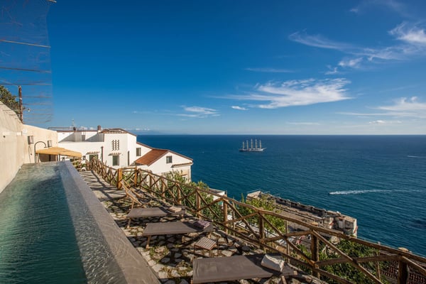 Nearest Airport: Naples Capodichino 1 h 24 min Nearest serviced town: Amalfi within walking distance Nearest major point of interest: Positano 42 min Driving time estimated by Google Maps A winding scenic drive along the coastal road, known for its hairpin bends and spectacular views, takes visitors to Positano, Praiano, Amalfi and the spellbinding uphill town of Ravello, with its incomparable belvedere. Any of these popular resort towns along the coast are good bases for exploring the surrounding areas. Buses and ferries run frequently and are the most convenient way to reach other towns while avoiding what could be a challenging drive in the bustling summer traffic. Other excursion possibilities include a boat trip to the islands of Capri and Ischia, a visit to the vibrant cities of Napoli, Salerno, or the gracious Sorrento, or an exploration of Pompeii and Herculaneum - the fascinating ruins of ancient cities destroyed by the eruption of Mt. Vesuvius in the 1st century A.D. The Amalfi Coast offers an abundance of cafés, shops, art galleries, and restaurants on its vertical terrain. Most beaches are small pebble inlets of land, thus the best way to enjoy the sand and the turquoise water is to tour the area by boat (ask our concierge about it!) and let an expert local captain take you to his favorite spots or suggest the best seaside restaurants. A memorable experience!