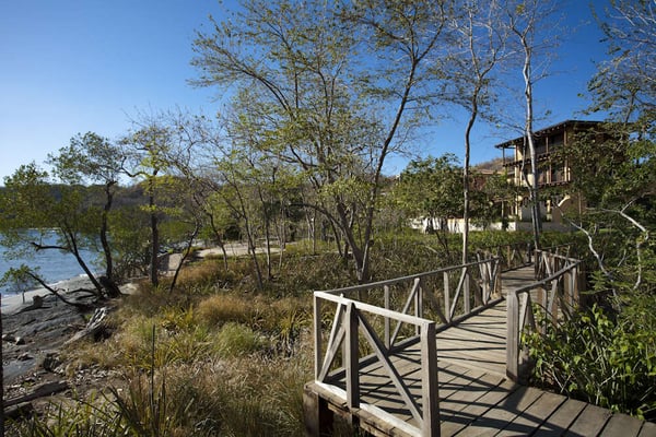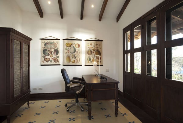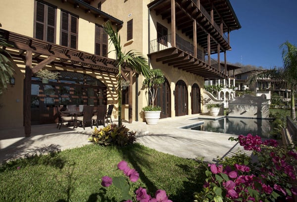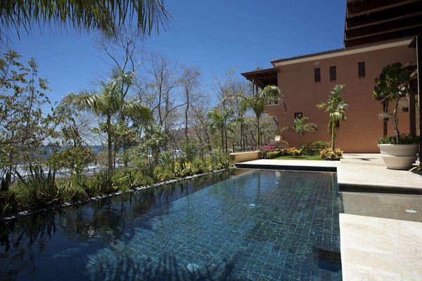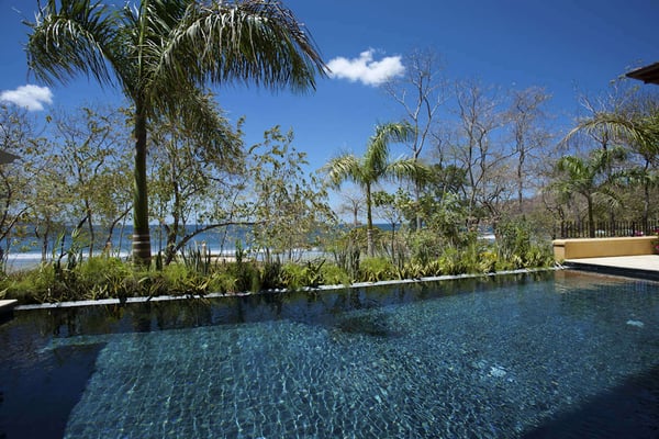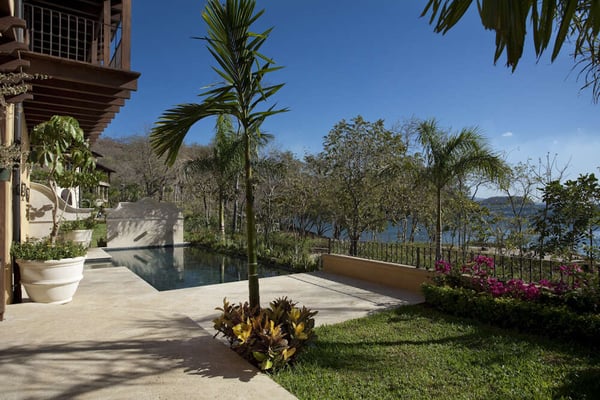 Steps from Playa Danta on Paseo del Mar, this home's amazing location is wedged into the intersection of one of the town's most iconic roads and a pristine natural landscape. The beach, trails, and shops and restaurants are all a quick walk down pedestrian-only streets. Indoor-outdoor living is the focal point of Casa de Tom. An open-air fountain courtyard between the main home and two-story guest house brings greenery and fresh air inside while the outdoor pool terrace's lush, green garden, infinity pool, and covered patio, serve as a relaxing social hub. Doors with large windows bring natural light and a fresh breeze into the full kitchen, living, and dining areas with enough space to seat twelve guests. Wraparound porches with hammocks and rocking chairs provide a space on both main floors to spend time together surrounded by the rich life and beauty of town. With its fabulous location, it's easy to enjoy everything that Las Catalinas has to offer here. Invite the town's expert chefs inside for a private, 5-star meal, take diving trips right from the front door, or head out for group dinners at Ponciana.
