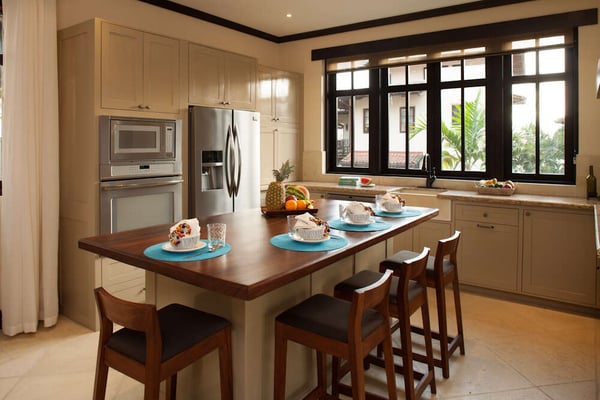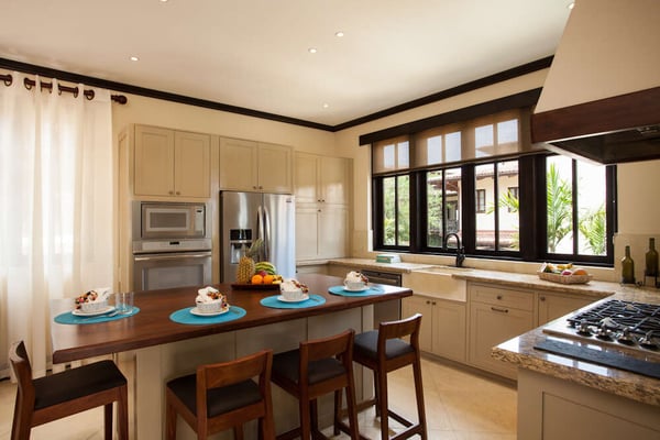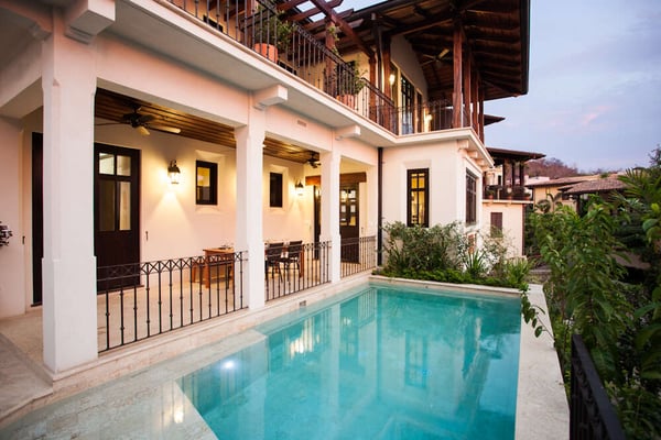 Set in a peaceful neighborhood with integrated living spaces and private terraces overlooking town, Casa del Alba is simultaneously tranquil and family-friendly. Off the Plaza Escondida entrance is a walk-up studio, a secluded respite from the rest of the home's social atmosphere. Over on Calle la Ronda, an additional entrance brings you into the home's breezy living room and dining room, filled with lounge seating and an earth-tone decor. Doors from the living room and kitchen open directly onto the pool terrace, for families to keep an eye on the kids playing in the pool while preparing a delicious homemade meal of fresh, local ingredients. One of the home's bedrooms is set across the terrace, making it feel nice and secluded from the rest of the villa. On the second floor, views from the home’s two sunset-facing terraces span past Plaza Escondida and out towards the ocean. Keep the doors open to let the gentle, tropical breeze, and soft natural light into a guest bedroom and master suite. Use this as a home base to sample some of the amazing experiences on offer in Las Catalinas. Hire an in-home chef to whip up a restaurant quality meal at home, hike to the top of McHenry peak, attend sunset beach barbecues on Playa Danta, or tour the bay on a guided paddleboarding trip.