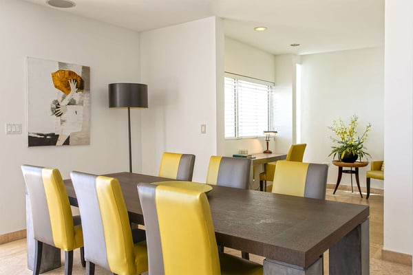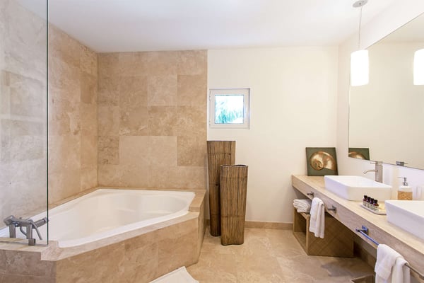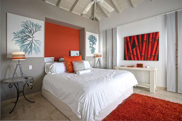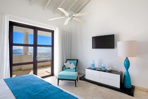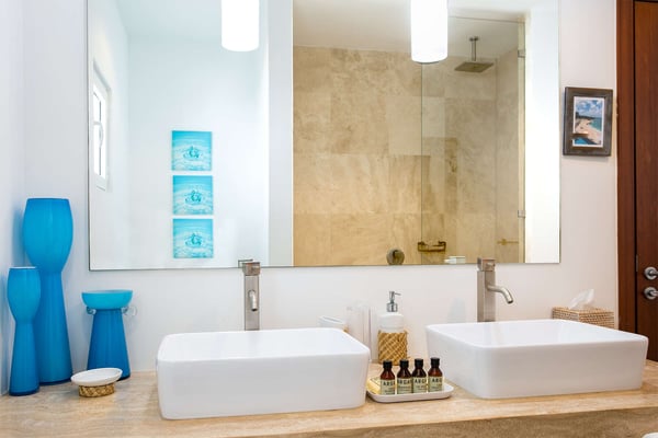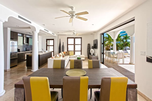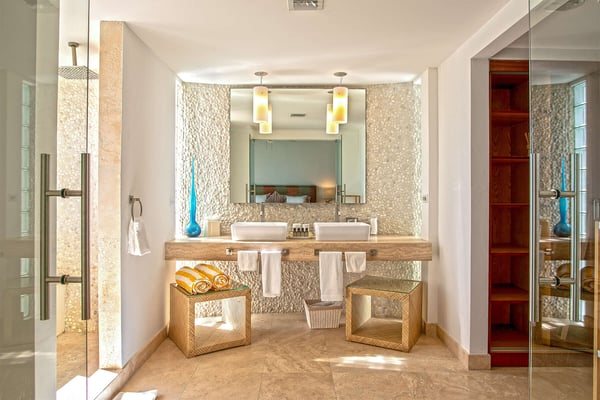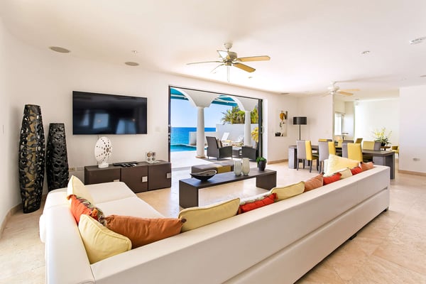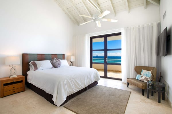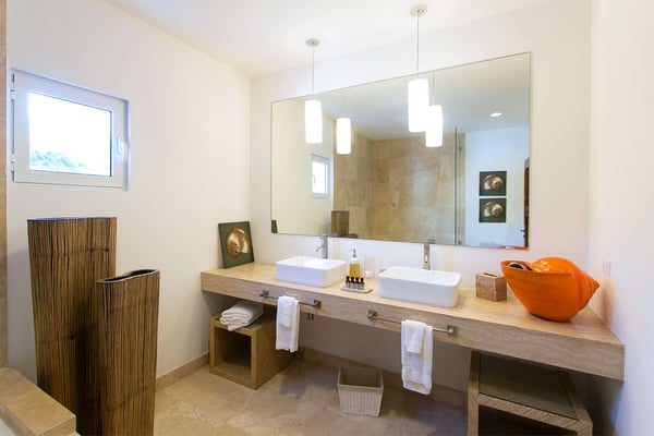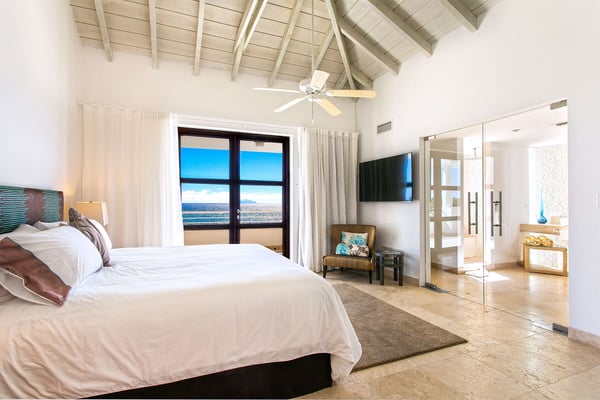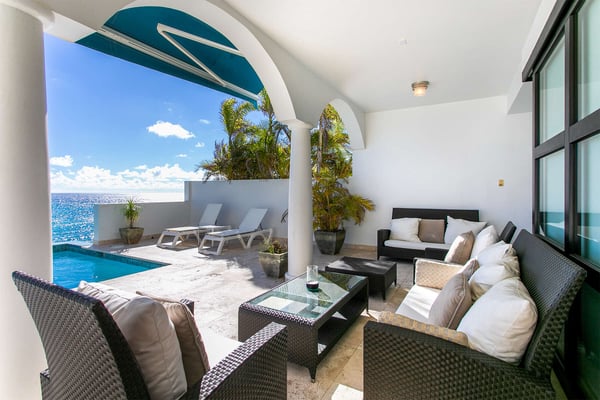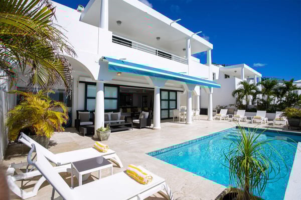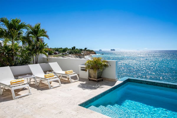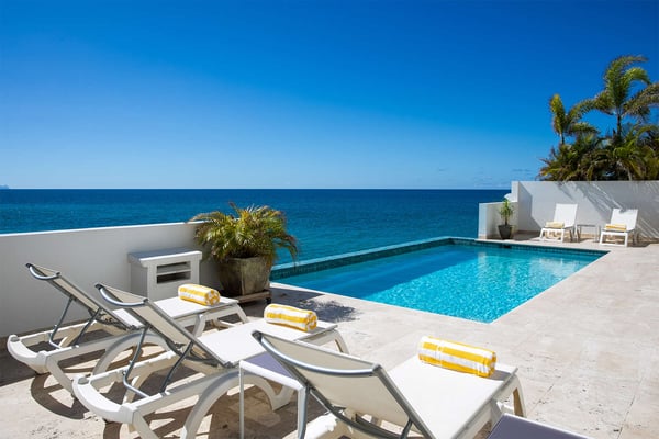 Villa Farniente in Sint Maarten is a gorgeous and exceptionally popular villa rental located at the beautiful Shore Pointe on the exclusive, scenic Cupecoy Beach. This fully air-conditioned property offers a prime holiday spot for every traveler and is located at the perfect location to get the best of St Martin. Shore Pointe is a gated enclave with many luxurious villas and townhomes. Villa Farniente's privacy is immaculate and you will never want to leave as it brings an exquisite architectural moment to Cupecoy Beach. Just moments away from the airport, Shore Pointe has gradually blossomed into a butterfly. The area is absolutely beautiful. You can appreciate the shimmering Caribbean Sea that captures the most beautiful shades of aqua and turquoise under the shining Caribbean sun. Not to mention, Villa Farniente is just steps from the Porto Cupecoy marina and Porto Cupecoy has a gorgeous plaza that is just across the street, offering great entertainment, fine dining restaurants, a grocery shop for your convenience, and a pastry gelateria store that is the perfect place for a romantic day out or to just simply spoil your children. The award-winning Villa Farniente is part of a prestigious and secure gated community with some elegant interior designs. It holds four gorgeous bedrooms; one bedroom on the main floor and three suites (including the primary bedroom) are located on the second floor. The overall floor plan of this luxury St Maarten villa rental is that the main floor offers a lovely open floor design that showcases a state-of-the-art kitchen, a high-end dining area, and an expansive living area with a modern, flat-screen TV that delicately sweeps out to the scenic pool terrace with the shimmering blue pool where you can enjoy the unparalleled views of the Caribbean sunsets on the expansive terraces and verandas. With clean lines, and expansive, open floor plans, this Caribbean-style villa is as beckoning and breezy as the Caribbean itself. Please note that the beach conditions of Cupecoy beach are highly variable. The beach ranges from a highly scenic and sandy beach with near-perfect conditions to a rocky beach depending on the shifting sands.