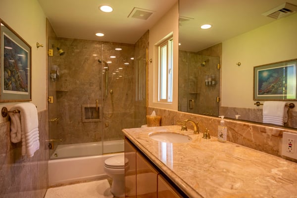 We invite you to unwind at Paradise Cove, an oceanfront property located in Napili on the stunningly beautiful West shore of Maui. You, your family, and friends are sure to be pleased with this three bedroom, three and a half bathroom home, complete with a resistance pool, hot tub, and a sandy cove out front that's known for sea turtles. Watch them frolic in the ocean and bask in the sunshine, but please keep your distance. Take in the spectacular views of Lana'i and Moloka'i while relaxing on the comfy outdoor lounge chairs. On the covered lanai you'll find a great propane grill to prepare your Island meals, and a large table to dine alfresco with the fruits of your labor. Indoors there's a spacious and fully equipped kitchen with another dining table, all with ocean views. Each bedroom is well appointed with en-suite bathrooms, air conditioning, plush King beds, televisions, and luxurious linens. The spacious master suite encompasses the entire upstairs area, with a sunken soaking tub, separate shower, and large ocean view lanai.