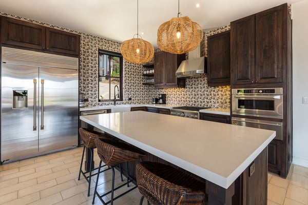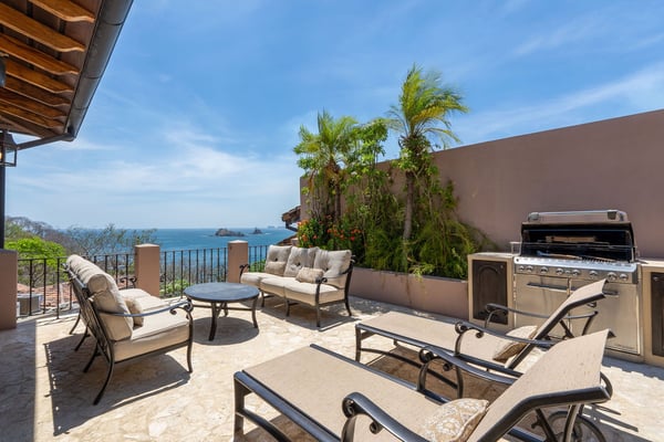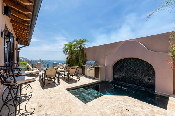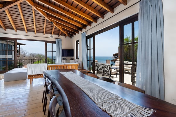 16 Calle Virginia is a hillside home perched above the walkable town of Las Catalinas. Its higher elevation brings with it stunning views over the town, forest, and ocean. An entry courtyard greets you off Calle Virginia that quickly opens up into the relaxing outdoor terrace and pool with ocean views. Views continue back inside the home. Wake up to the gorgeous blues of the Pacific Ocean glittering outside the master balcony or sink into relaxation in the airy, bright guest bedrooms. Amplify the experience even more with in-house massages, al fresco cocktails followed by a hand-crafted private chef dinner, and sunset walks up to McHenry Peak, or head out for guided paddleboard tours around the bay and catamaran cruises along the coast. To ensure a care-free vacation, a dedicated Housemom will manage all of the tasks, preparing breakfast and light snacks with guest's ingredients, and coordinating housekeeping while you are out enjoying sunset barbecues on Playa Danta, wine tastings in the Cava at Copper and Stone, guided mountain biking trips on the trails, or diving off the Catalina Islands.