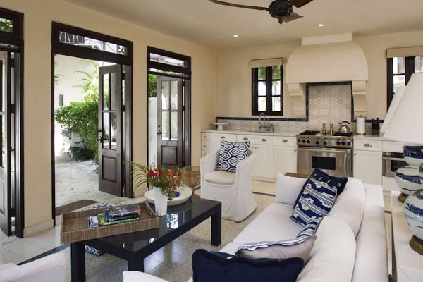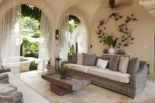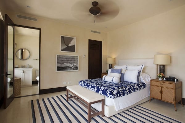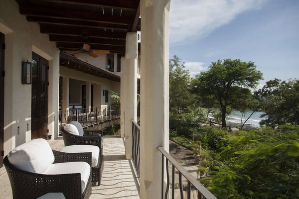 Town founder Charles Brewer calls this stunning three-story villa home, so you might feel like you are staying at the mayor's house. With a gorgeous courtyard and ample guesthouse, it's the perfect home for a large family or group of friends. If tropical bliss had a name, it might as well be Casa Brewer. Spend your day on the lovely peaceful terrace with spellbinding ocean views or entertaining guests in its exquisite loggia and poolside grotto, and enjoy the time spent in the open-air spaces of this Costa Rica beachfront vacation rental. The indoor living space, designed by interior design star Beth Webb, is where elegance & style meet warm & friendly. Everything here is light, airy, and sophisticated. From its open kitchen and stylish living room to its spacious and enchanting suites, each with an en-suite bathroom, this down-home luxury villa will take your breath away. Add in a local flavor and a personal touch by the homeowners and guests can understand how this spectacular oceanfront home exudes a feeling of wellbeing. Steps from the sea, Casa Brewer accommodates up to twelve guests and is a treat for adults and children alike. To ensure a care-free vacation, a dedicated housemom will manage all the tasks, preparing breakfast and light snacks with guests' ingredients, and coordinating housekeeping while you are out enjoying sunset barbecues on Playa Danta, wine tastings in the Cava at Copper and Stone, guided mountain biking trips on the trails, or diving off the Catalina Islands.