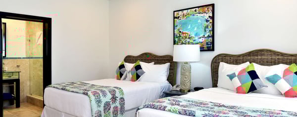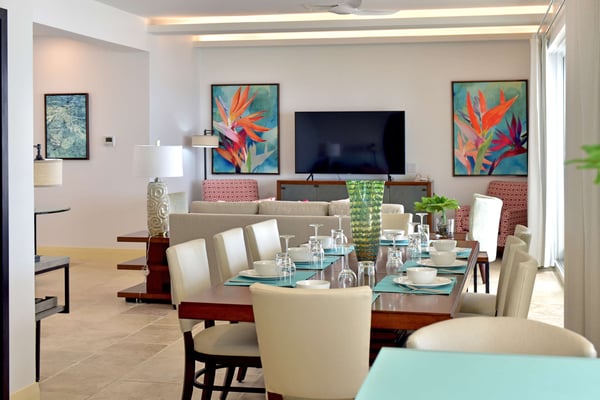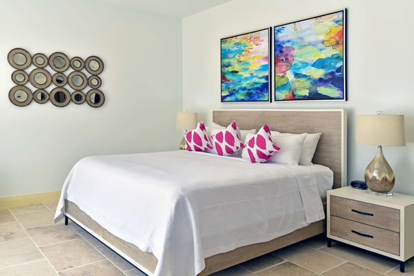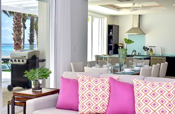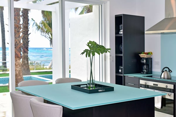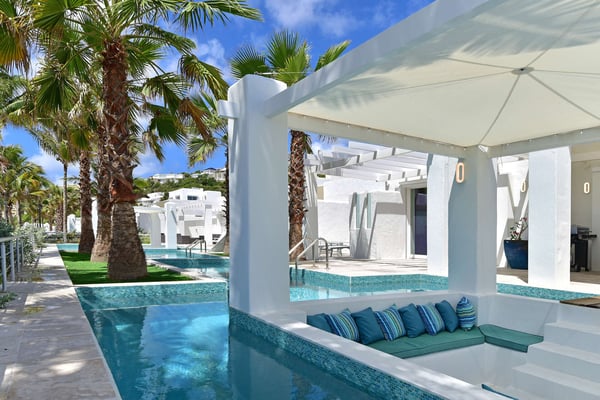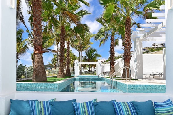 Being just steps away from Dawn Beach, you'll enjoy the mesmerizing ocean views from the Beachfront Villa. Luxury furnishings throughout the villa will make you feel pampered, happy, and relaxed, especially as you enjoy the pre-stocked wine coolers with a great wine selection (for purchase at your convenience). Villa Coquina offers wonderful views of the ocean, it offers a spacious living and dining area for gathering, as well as a beautifully appointed kitchen and bathrooms. The three-bedroom This four-bedroom villa has sleeping and dining accommodations for 8. The villa is one level with a private plunge pool surrounded by a large, furnished terrace with your own private sunken gazebo area. Set directly on Dawn Beach, you'll have a fantastic view of the ocean and the neighboring island of St. Barths. We offer luxury furnishings within the comfortable living area and travertine floors throughout the villa. You'll find the dining accommodations are second to none. The fully equipped gourmet kitchen features an electric cooktop, oven, microwave, double-door refrigerator with ice machine, dishwasher and temperature-controlled wine cooler, blender, coffee maker, and a toaster. Large glass doors opening to the outside terrace and pool bring the ocean trade winds into the living area. Lounge chairs and outdoor dining area provide further enjoyment in the sun-drenched tropics. The primary bedroom has a private terrace, a king-sized bed, flat-screen satellite TV, a walk-in closet, a safe, and an en-suite bathroom with a rain shower. Guest bedrooms offer either a king-sized or two double beds, flat screen satellite TV, spacious closet, and en-suite bathrooms. Premium bedding and sheets are used throughout.