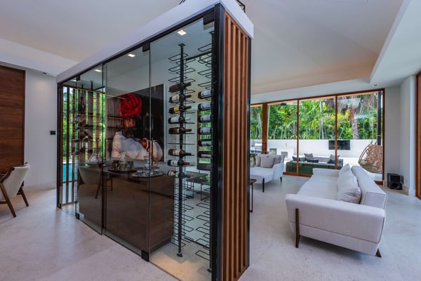 Step across the koi pond in the entryway of Villa Marya and discover a Bali-style oasis in the heart of Miami Shores. Sleek contemporary lines and an open-concept layout create an airy, fluid space amid the lush foliage of Southern Florida, perfect for enjoying cocktails around the pool or private meals from the gourmet kitchen. Minutes from Biscayne Boulevard and the 79th St. Causeway, you’re within easy reach of Wynwood, downtown Miami, and Miami Beach. The villa’s terrace and interior are seamlessly fused, with ample living areas in the sun or shade. Play under the palms or relax on hand-carved chairs from Indonesia. Spark the grill in the afternoon and gather for meals on the veranda. Linger outdoors under the evening sky, dipping into the floodlit pool and sipping drinks. The interior offers a cool counterpart to the sun-kissed terrace, with smooth marble floors, natural wood accents, and superb touches of Balinese decor and contemporary artistry. Enjoy quiet afternoons or festive evenings in the TV lounge, and savor a special dinner before a night on the town. The single-level home features 6 bedrooms. The primary suite with a king bed overlooks the pool and includes an ample ensuite bathroom. The bedroom arrangements are perfect for families, business travelers, and groups of friends seeking extra privacy amid the city’s myriad delights.