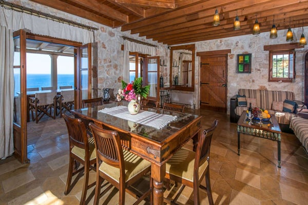 Situated on the northern side of Zakynthos, Villa Zante 4 stands majestically on the cliff and offers Breathtaking panoramic views. The villa was built according to the traditional Zakynthian architecture, with natural stone. The Villa is beautifully decorated and offers four spacious bedrooms, all with an ensuite bathroom, a comfortable living room with a stone fireplace, lots of dining options including alfresco, a private infinity pool with hydro-massage area, and direct access to the sea! The perfect place for a family or friends gathering!
