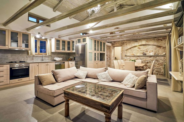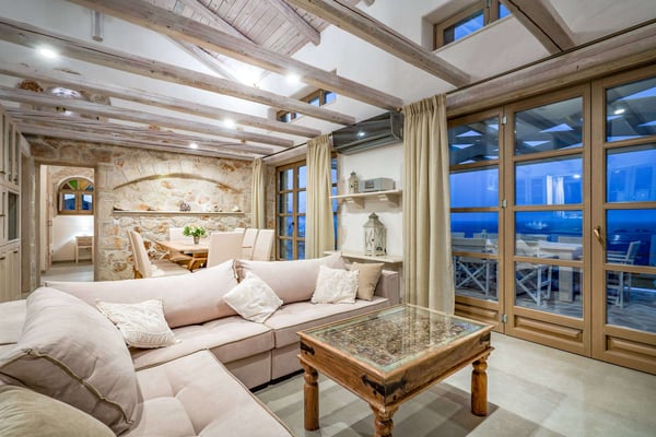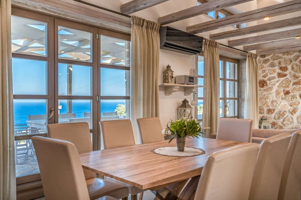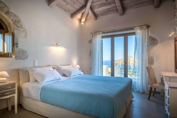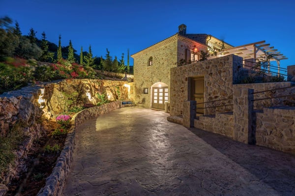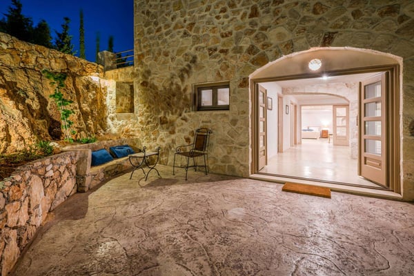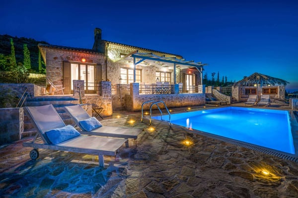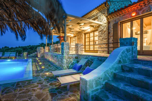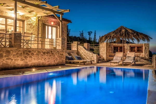 Situated on the northern side of Zakynthos, Ile d'Or 4 (Golden Island 4) stands majestically on the cliff and offers breathtaking panoramic views. The villa was built according to the traditional Zakynthian architecture, with natural stone. The Villa is beautifully decorated and offers four spacious bedrooms, three bathrooms, a comfortable living room with a stone fireplace, lots of dining options, including alfresco, an indoor Hammam, a private infinity pool with hydro-massage area, and direct access to the sea! The perfect place for a family or friends gathering!