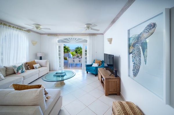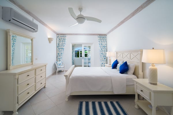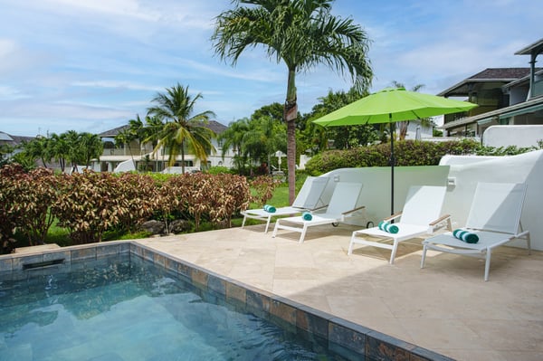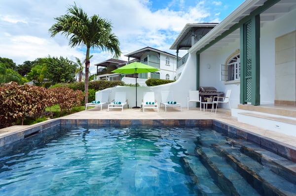 Nearby construction may result in noise disturbances. For further details on how this might affect your stay, please reach out to a villa specialist. The Fairmont Royal Pavilion is one of the most prestigious resorts in Barbados. Guests will have complimentary access to the Pavilion Beach Club and restaurants. Experience a fresh perspective at Frangipani, the recently-renovated luxury townhouse rental in Sugar Hill, Barbados. Under new ownership, this beautiful villa features a modern look with stylish new furniture, creating an inviting atmosphere perfect for relaxation and fun. As one of the premier Barbados attractions on the West Coast, Frangipani offers fine sea views and a private pool with lighting, providing an ideal setting for sun-soaked days and relaxing evenings. With three spacious bedrooms, each designed for comfort and relaxation, you'll feel right at home. The upper level offers two bedrooms, each with a private balcony, perfect for enjoying great views of the Caribbean Sea. The master bedroom features a king bed and an en-suite with both a bath and shower, while the second bedroom is equipped with twin beds and an en-suite bathroom. On the lower level, the third bedroom includes a queen bed and en-suite. As an additional option, families with young children can easily accommodate extra guests with a bunk-bed option available for a fee of $50 per night. All sleeping areas have air conditioning. The large open-plan living area is perfect for family gatherings. It features a modern and comfortable lounge and kitchen, complemented by cooling ceiling fans, high-speed Internet, and a large smart television equipped with Flow channels. The modern kitchen, equipped with a breakfast bar, hob and oven, fridge-freezer, and microwave, makes mealtimes a breeze. Step through the French doors to the outdoor terrace to enjoy family fun by the pool with seating for up to eight diners and a swing chair, or unwind on the pool-side sun deck, which has loungers and an umbrella for shade and a gas barbeque for outdoor cooking.