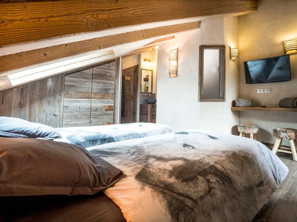 In the heart of the 3 Vallees, the world's largest ski resort, Chalet Beta can accommodate up to 12 people on four floors with its five double bedrooms and en-suite bathrooms it also offers a wellness area with a Jacuzzi, sensory shower, and a sauna. You will also find a super open plan kitchen and dining room, and a large salon with a fireplace. For the evening's entertainment, a home cinema with an extra-large screen (two pull-out beds can be made in the room suitable for children). Chalet Beta's main south-facing terrace gives a spectacular view of the famous peaks of Méribel, equipped with a dining table, loungers, and exterior lighting for warmer evenings, while admiring the view. Chalet Beta is located within a hamlet of four chalets, possibility of booking one or all of the chalets.