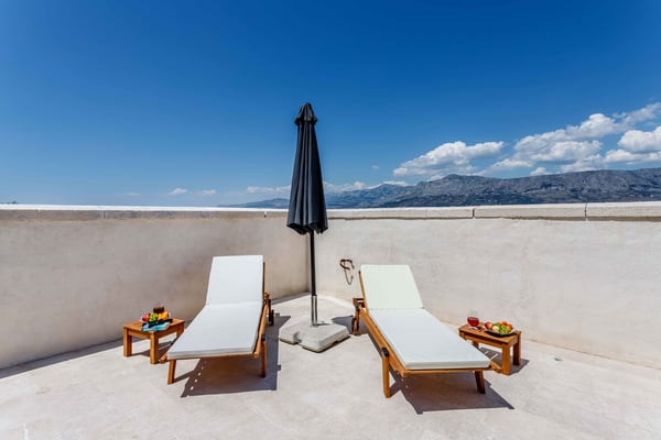 The St. Nicholas lighthouse was built in 1882 on the north side of Brac Island. The lighthouse was built using centuries-long stone building tradition, but surprisingly, not by locals, but by Austrians, who had a mission along the Adriatic coast to introduce security into our waterways. The lighthouse consists of a fourth-stone tower and a ground-floor house where the lighthouse keeper once lived with his family. Today, the operation of the lighthouse is automated and powered by solar modules. Despite being fully renovated, the lighthouse preserved much of its former romance. The lighthouse of St. Nicholas is situated in the central part of the north coast of the island of Brac, above the west promontory of the bay of Pucisca. The Austro-Hungarian Monarchy entered this location into the map of future Adriatic lighthouses because of the proximity of the quarry of Brac, situated at the opposite peninsula of the same bay. After the location for the lighthouse had been determined, the road, exceptionally preserved in its original condition, was built from the settlement Pučišća to the place where the lighthouse was to be built. From the lighthouse further towards the west, there is only a seaway, leading to several hidden small bays. The lighthouse is a low square stone tower with a gallery and a small turret. Out at sea, especially during the night when the strong north wind blows, the light of St. Nicholas marks the only safe refuge to every day a greater number of yachtsmen who cruise along the northern coast of the island of Brac. This has, despite the modern satellite navigation, one of the smallest Adriatic lighthouses, and till today maintains its essential function in the eastern Adriatic sailing security system. With its 70m², Saint Nicholas Lighthouse can accommodate 4+2 guests. The lighthouse was fully renovated in 2019. While keeping in mind the authenticity of this magical place, we paid attention to every detail. Original wooden beams were restored. Traditional architectural artistry, like the window arches, gives a unique charm to every room. Many original pieces found their place inside this lighthouse. Saint Nicholas Lighthouse has two bedrooms with king-size beds and a modern bathroom connected to the bedroom by a glass wall. The lovely Mediterranean traditional kitchen is fully equipped with modern devices. Every piece of furniture was carefully picked to suit the style and story of this fantastic place. Keeping the feel of its originality was primary to achieve. On the backside of the lighthouse, surrounded by the Church’s walls and the lighthouse itself, you will find a space where you can dine under the blue sky or enjoy warm summer nights under the stars. For some more enjoyment in your private oasis, there is a jacuzzi with a stunning view.