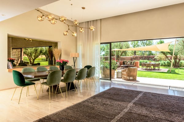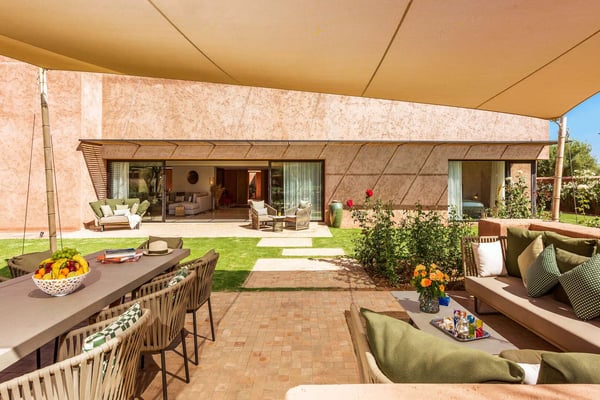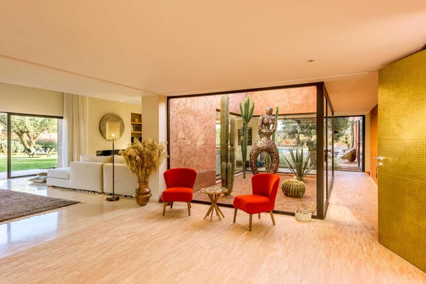 The villa is located in the famous Domain Royal Palm Fairmont. 15 minutes from Medina and all kinds of activities of Marrakech. 5 min drive - Samanah golf, Noria golf, Atlas golf. 10km from the international airport.