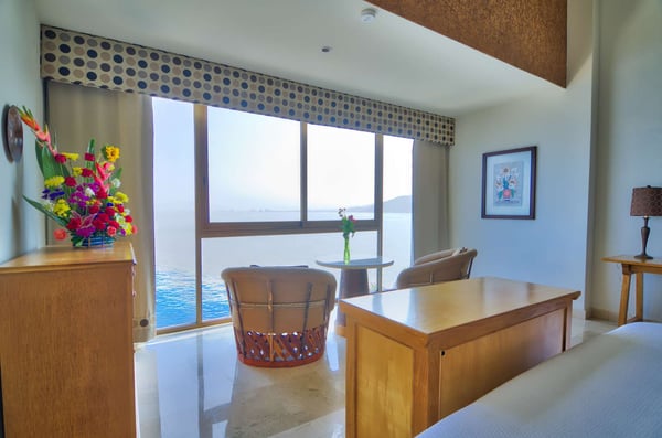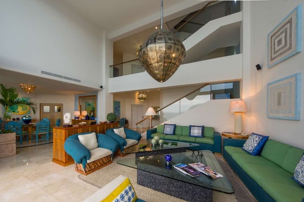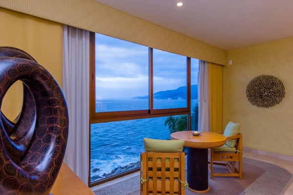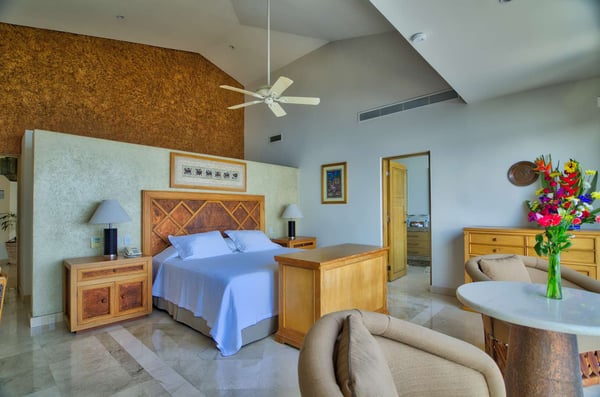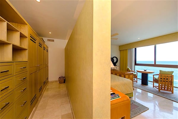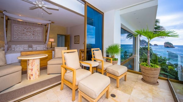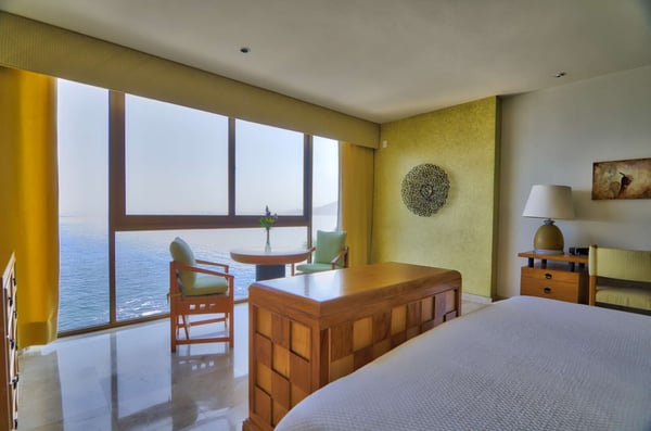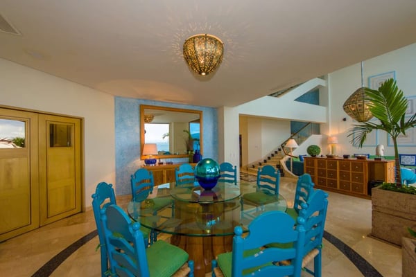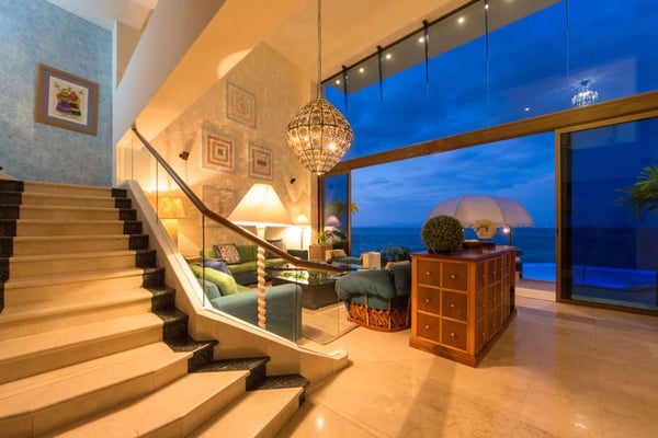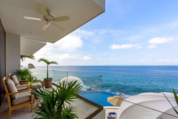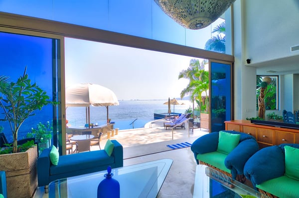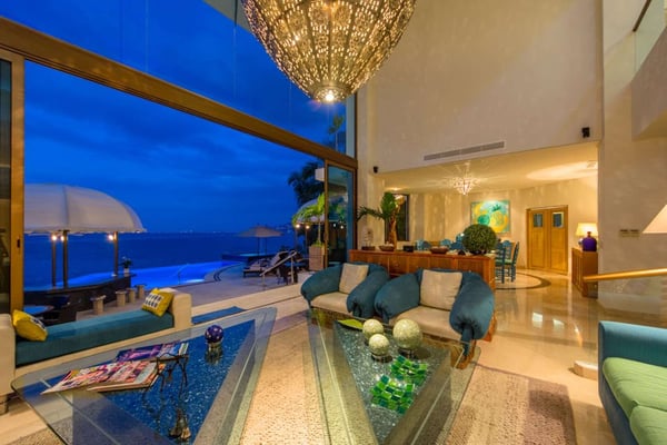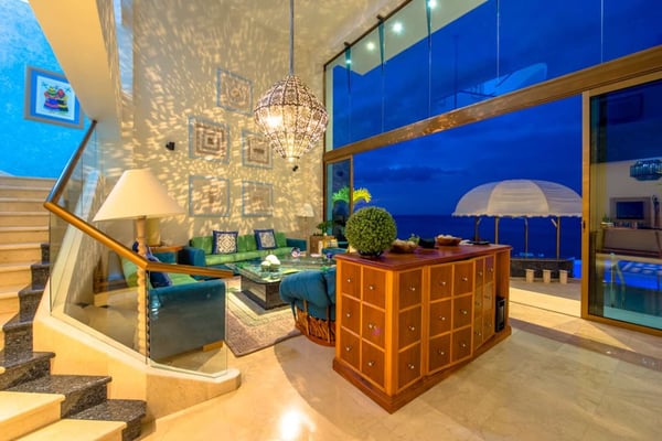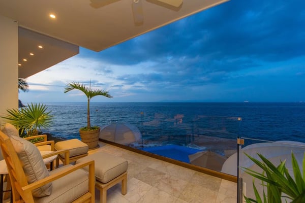 Casa DeMae 6 Bedrooms sleeps 12, and offers an Ocean Front private infinity pool, swim up bar, hot tub, elevator and a full staff. This stunning estate has a sleek and sexy vibe – with the latest in contemporary designs and furnishings. The rooms are each unique and feature regional art and design elements combined with luxuriously appointed bedrooms and baths all with ceiling mounted “hide away” TV’s and Jacuzzi tubs with ocean views. Casa DeMae combines modern design and oceanfront elegance with a lush garden setting found only in this Sierra del Mar at Los Arcos gated community. Spacious and dramatic entertainment areas and oceanfront terraces face an infinity pool and sweeping views of the entire Bay of Banderas and the famous Los Arcos archipelago. A rooftop sundeck offers guests stunning views of the edge of the bay and Los Arcos to the south and a great place for early morning sunrises. Sunbathing or saluting the amazing sunsets. Casa DeMae features a huge pool and massive built in ocean edge hot tub. A dramatic swim up bar, and wonderful shaded palapa area. The pool deck offers multiple seating/ sunning areas.