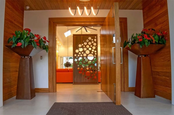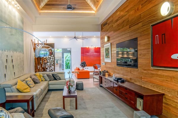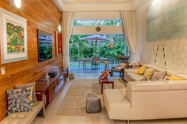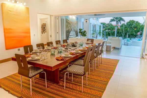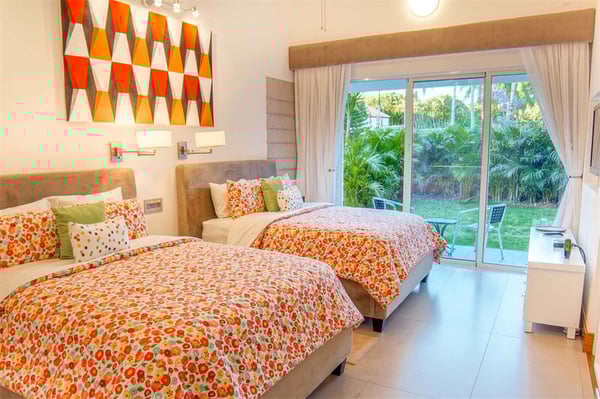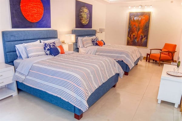 All guests must register with the Casa de Campo Concierge office, and for a small daily fee ($30 per adult per night & $15 per child per night), are granted access to resort areas and amenities. Casa de Campo Resort facilities and amenities include golf courses ($), the fitness centre ($), racquet center ($), restaurants ($) and bars ($). Contact Rental Escapes for more information about pricing. Wooden doors swing open to meet you and glass walls fold back at this colourful, art-filled contemporary home at Casa de Campo. Sculptures stand as focal points on both the pool terrace and the coffee table, and bold prints add life to nearly every room. It’s a short drive to resort amenities like the golf course and country club and to one of the prettiest beaches in The Dominican Republic. Soak in the Caribbean sun on a lounger on the pool terrace, then splash in the pool and hot tub kept private by lush tropical gardens. The terrace also features alfresco sitting and dining areas, and there’s a second of each on a shaded veranda just off the house. Fold back the glass walls to turn the veranda and great room into one indoor-outdoor living area. The dining area sits atop a Moroccan rug, the living area has Popsicle-hued sofas, and the fully equipped kitchen is laid out around an island. There’s also a separate TV lounge just off the great room. This villa is a short drive from some of the highlights of Casa de Campo: tennis courts, a country club, and two of the best-known golf courses in the Caribbean, Teeth of the Dog and Dye Fore. Spend a day strolling the white sand or splashing in the clear waters of the resort’s private beach, Minitas Beach.