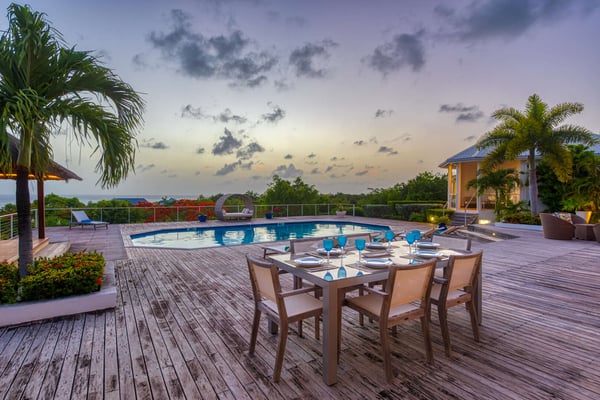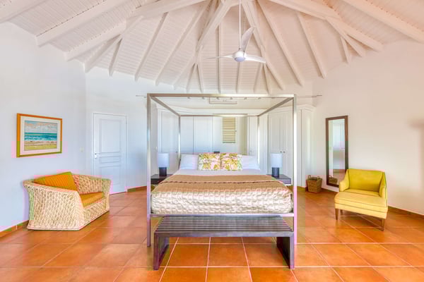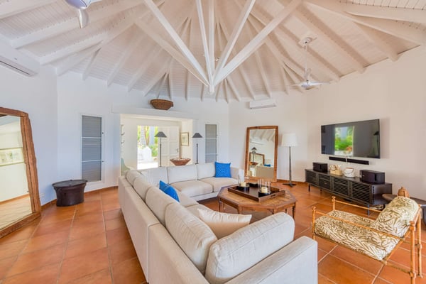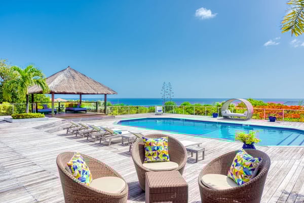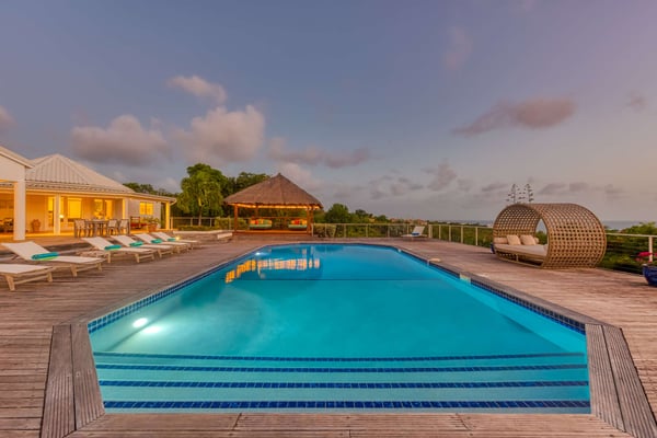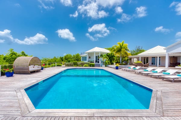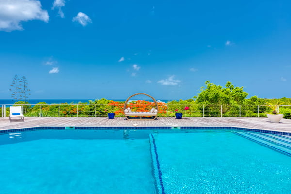 Lotus is a magnificent Saint Martin villa rental. Open and fully air-conditioned, spacious floor plan, state-of-the-art kitchen, large pool, and outside deck with large sitting areas around the pool and under a very large Indonesian-style gazebo, overlooking Long Bay (Baie Longue), St. Martin. Three equal bedrooms tastefully decorated with luxurious bathrooms en suite. Beautiful vistas of the Caribbean Sea from a location very near Bay Longue beach, Saint Martin. This villa can be rented as a two or three-bedroom villa. Villa Lotus is designed to be inclusive and accessible, making it a welcoming retreat for guests with mobility challenges. The villa features a completely flat, convenient path to the pool area, ensuring a smooth transition throughout the outdoor spaces. Additionally, some bedrooms are fully wheelchair accessible, thoughtfully designed with accessibility in mind to provide comfort and ease of movement. Whether you're enjoying the villa's luxurious amenities or relaxing by the pool, Villa Lotus offers a seamless and accommodating experience for all guests.