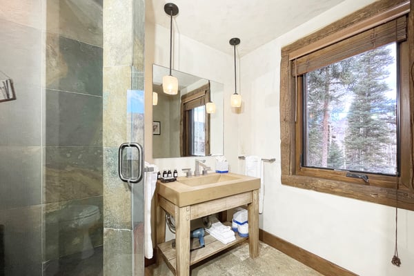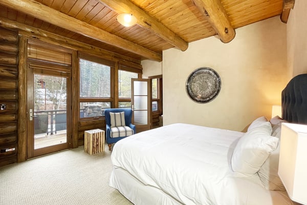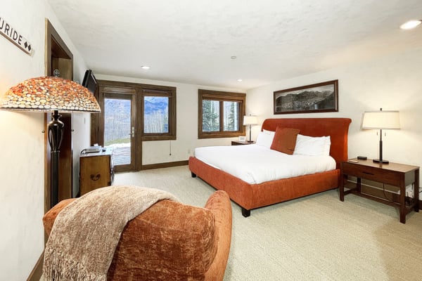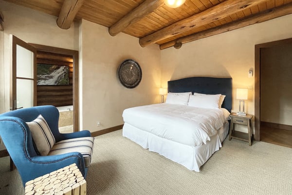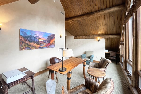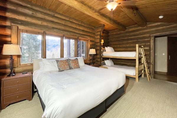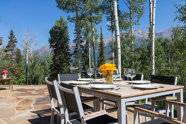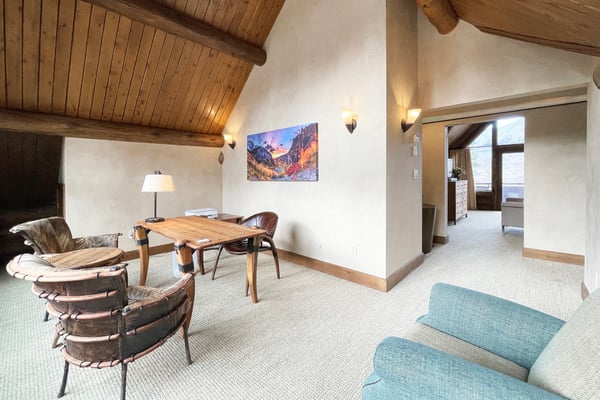 Nearby construction may result in noise disturbances. For further details on how this might affect your stay, please reach out to a villa specialist. A dream come true for any skiing enthusiast, this impressive ski house rental in Telluride, Colorado, sits directly on the Bridges ski run. That means guests are free to ski right out of the front door for a day of excitement on the slopes. This home offers an excellent level of privacy thanks to its high perch in Mountain Village, and it's still just a short ride into town. There's an abundance of room for the whole family to get outside and play, and the entire home enjoys full sunlight during every season of the year. Guests enter this three-level Telluride mountain house rental directly into a marvellous great room that features a huge vaulted log ceiling and large windows that offer spectacular views of the San Sophia Range. A stone fireplace provides the perfect spot to warm up in the morning with a cup of coffee or after a long day on the slopes. This room also comes with exceptionally comfortable furnishings, a flat-screen TV with a Blu-ray player and Apple TV, and a wet bar. This home has a beautiful state-of-the-art kitchen that comes with every item that may be needed to create incredible meals. Guests enjoy the use of everything from top-of-the-line appliances, including a built-in Miele espresso maker, right down to a wonderful selection of cookware and utensils. The kitchen is right next to the great room, so it's easy to grab snacks and head back into the great room to enjoy time with the family. Only in this home will guests find a completely private primary suite that takes up the entire top floor. The couple who is lucky enough to get this room will enjoy more than 2,000 square feet of living space, and it offers a separate sitting area. It also comes with air conditioning, a king-size bed and an en suite bath with a jetted tub and a multi-head shower. Each of the remaining guest rooms in this ski vacation home rental is large and beautiful. Guests may choose from three king suites with a flat-screen TV and glass shower, one with a jetted soaking tub, or a twin bed suite with an en suite bath with jetted tub and glass shower. All these rooms feature ultra-comfortable beds and beautiful furnishings. For the young people in the group, there's also a special bunk room where they can all sleep, play and hang out together. It comes with four twin-size beds, a private bath, and plenty of room to spread out. Just off of the great room, guests will discover a set of sliding glass doors that open up to a huge sprawling deck and a beautiful garden. Guests may watch the skiers zip right by on their way down the Bridges ski run or simply take in the views of the San Sophia Ridge. This outdoor area offers comfortable seating, a beautiful fire pit, a saltwater hot tub, and a barbecue grill. A pleasant experience awaits guests in this home's private yoga room. Located up a staircase in a lofty tower, the yoga room comes with mats and props and promises complete seclusion for meditation and inspiration. The lower level of this home features a perfect space for the youngsters to hang out without bothering the adults upstairs in the great room. This area is home to an amazing media and game room that includes a ping pong table, a billiard table, and comfortable leather sofas that surround a flat-screen television. The room also comes with a refrigerator, an ice maker, a microwave, and a dishwasher. When the adults have a chance to use this room, they're sure to enjoy the full-size bar that seats six. This home comes with a mud room that's perfect for the storage of skis, heavy winter coats, boots, and other equipment. It also has boot dryers that ensure guests will never have to put on cold, wet boots. Guests who stay at Alpen Ridge may choose to embrace the silence or turn up the music without the worry of disturbing another soul. TMV BL# 005040
