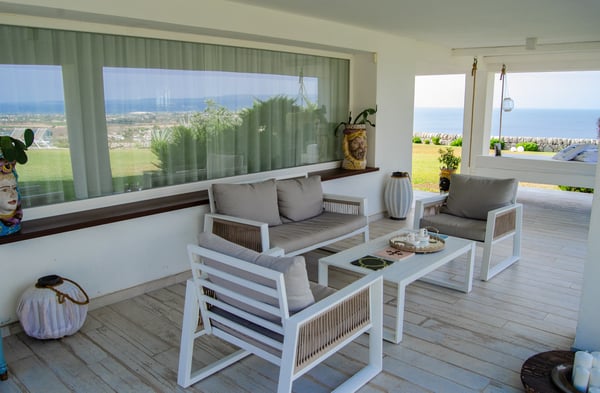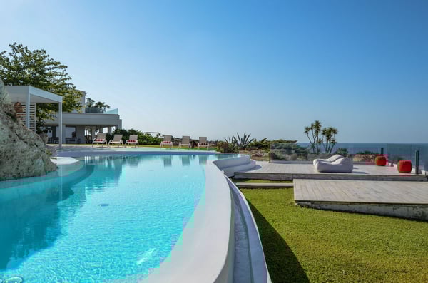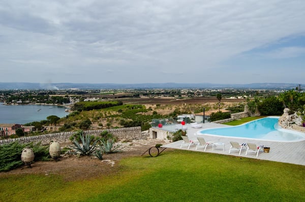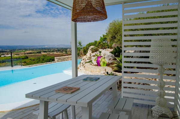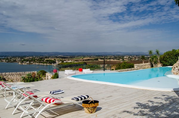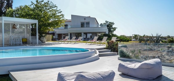 Delphina is an exceptional elegant villa, built on two floors, located in a protected natural reserve, only few miles from Siracusa. It has the Mediterranean Sea as a backdrop with the majestic and soothing views of its waters. The villa’s contemporary decor has been inspired by the sea and the vegetation surrounding the villa. The color scheme of blues and white, reminiscent of the beach, the whimsical art, and the serene nautical theme adopted throughout, make this villa feel like your personal sanctuary. CIN: IT089017C242DMBFHM