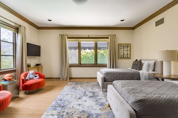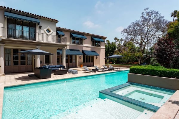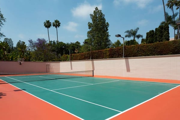 Nestled in a prime location just north of Sunset Boulevard and a stone’s throw from the iconic Beverly Hills Hotel, Hartford Regency offers an unparalleled escape. This stunning gated residence boasts six generously sized bedrooms, each with its own en-suite bathroom, ensuring the utmost comfort and privacy for all guests. Effortlessly blending contemporary elegance with resort-style amenities, Hartford Regency caters to every whim. Dive into the refreshing private pool, perfect for California afternoons, or challenge your guests to a spirited match on the floodlit tennis court. Unwind in the tranquil sauna or lose yourself in a captivating novel within the well-appointed library. The heart of the home lies in the expansive family room, which seamlessly flows out to a breathtaking backyard oasis. Take a refreshing dip in the inviting swimming pool with a soothing spa, or gather with loved ones under the inviting loggia lounge area. Ascend to the second floor and discover the spacious master suite, complete with its own private balcony, a perfect sanctuary to unwind after a day of exploration. Perfectly situated in the coveted 90210 zip code, Hartford Regency places you within walking distance of all that Beverly Hills has to offer. Explore a world of renowned restaurants, upscale shopping, and iconic attractions, all just moments from your doorstep.
