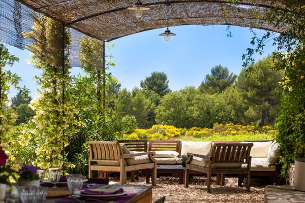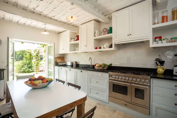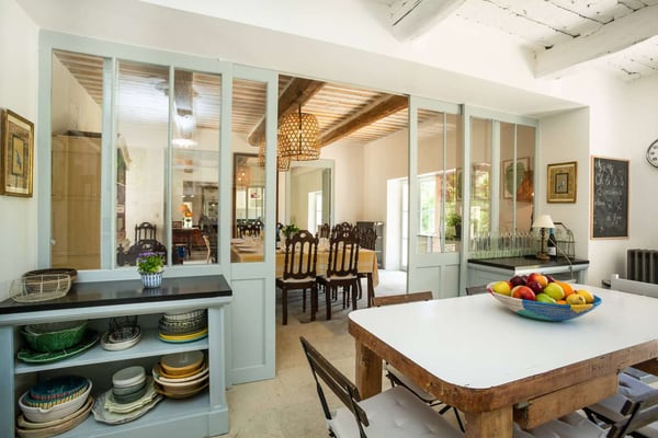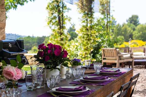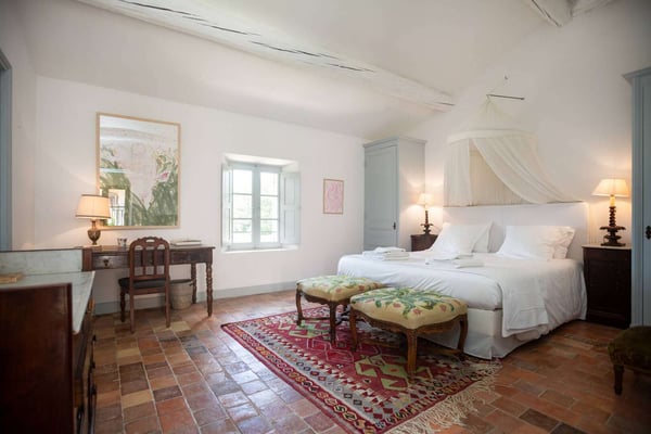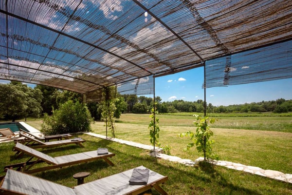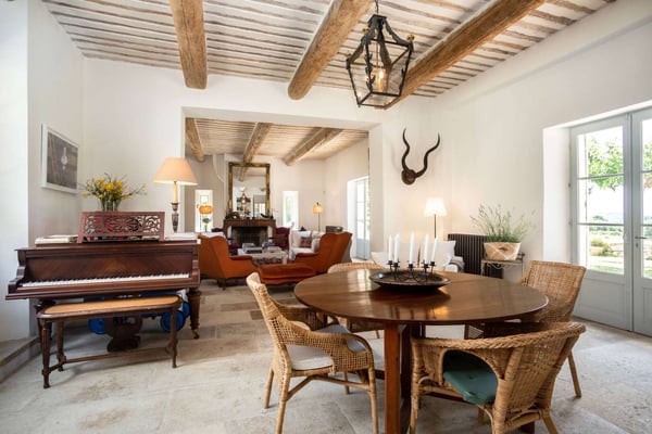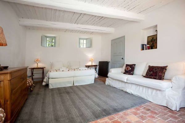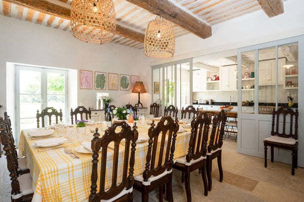Methamis 13 is located in the Ventoux region, to the north of the Luberon region. The house dated from 1760, refurbished in 2015 is set on three hectares of glorious Provence countryside with lawn, meadow, vineyard, pine woods and garrigue to explore. It sleeps 13 people in seven bedrooms and six bathrooms. The property is formed in a U around the courtyard. The front of the house is west-facing, and enjoys a beautiful sunset. Under a pergola is a seating area and the outside dining table, as well as a barbecue. On the ground floor, the living room, dining room and kitchen create a large light-filled living space thanks to the many windows and french doors. You will love the exposed beams, the natural stone, and Terracotta flooring, as well as the hand-picked quality furnishings which make this sumptuous country house a Provence gem! With the long swimming pool, the pétanque court, the outdoor tennis table and soccer table, the children hut, zipline, swing and slide, there will be activities for everyone, and if not enough, as the property is located just on the doorstep is the Mont Ventoux, it provides a spectacular landscape for hiking, biking or driving from village to village.