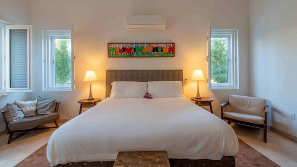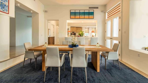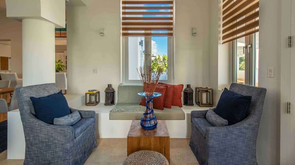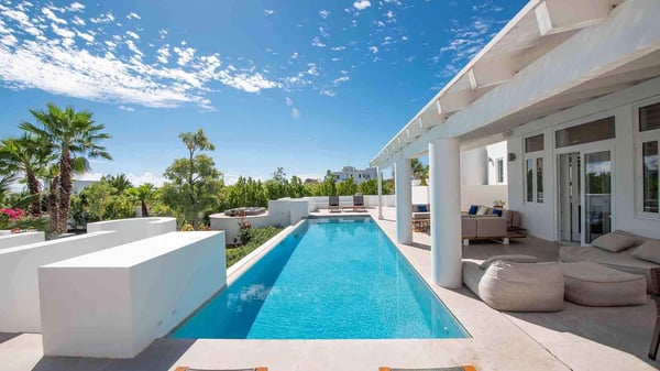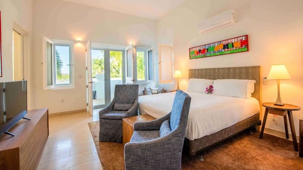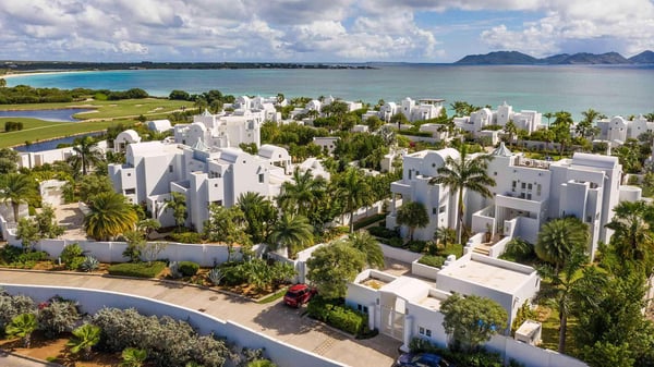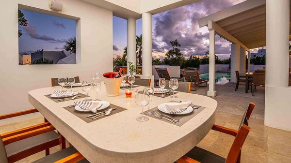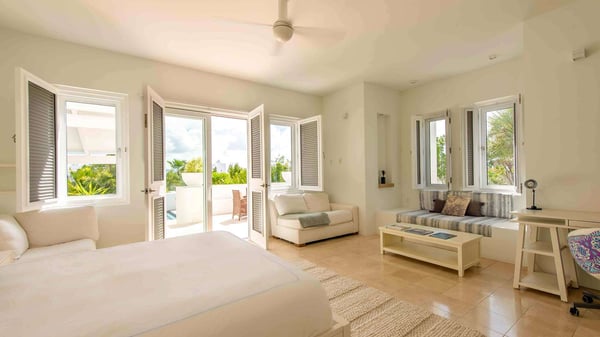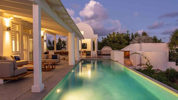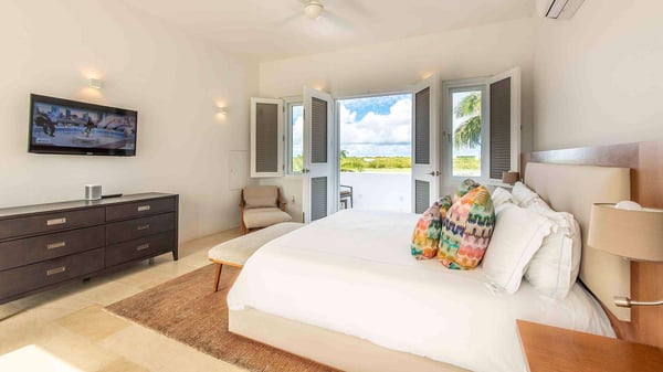 Shiloh Estate, a luxurious four-bedroom Anguilla villa rental, is nestled within the lush landscapes of Aurora Anguilla Resort & Golf Club. Situated in Anguilla's exclusive West End in Rendezvous Bay, this stunning estate combines pristine white architecture with the island's natural beauty, making it one of the most sought-after villas in the area. Surrounded by the azure skies and crystal-clear waters of Anguilla, Shiloh Estate offers a serene and elegant retreat for those seeking both luxury and tranquility. Spanning an impressive 10,000 square feet, the villa's outdoor oasis is a paradise of relaxation and leisure. A captivating pool is the centerpiece, inviting guests to take a refreshing dip or simply bask in the sun. Nearby, a jacuzzi offers a perfect spot to unwind, while the barbecue area is ideal for hosting casual gatherings with family and friends. Multiple seating areas and terraces adorned with daybeds and comfortable loungers provide ample space to soak in the breathtaking views of the sunset. Alfresco dining is a delight here, with a dedicated dining area where guests can enjoy meals under the open sky, surrounded by the island's natural beauty. The interior of the Shiloh Estate offers 4,800 square feet of elegantly designed living space. The main level features a sophisticated open floor plan connecting the villa's living areas. A double living area provides plenty of space for relaxation, while the dining area is perfect for enjoying gourmet meals prepared in the well-appointed kitchen. The kitchen itself is beyond incredible, equipped with high-quality appliances and designed to cater to every culinary need. The open kitchen flows effortlessly into the expansive patio, where an infinity pool offers stunning views of the surrounding landscape. The villa's four generously sized bedrooms are designed with comfort and luxury in mind. Each bedroom features a modern en-suite bathroom, beautifully finished with marble. The primary suites are more than impressive, offering both indoor and outdoor bathrooms that include rain showers and deep soaking tubs. These suites are a sanctuary of relaxation, with air conditioning units ensuring comfort and floor-to-ceiling doors that open to welcome the refreshing ocean breeze. The balconies attached to each bedroom provide a private space to enjoy the stunning ocean views, making every morning a peaceful retreat and every evening a serene escape. Shiloh Estate is perfectly positioned to offer guests the best of both worlds: a private, luxurious retreat and easy access to the vibrant offerings of Aurora Anguilla Resort & Golf Club. The back of the villa opens up to tropical gardens, an 18-hole golf course, and the ocean, providing a picturesque backdrop to the estate. As part of the exclusive resort, guests can access a world-class beach, a premier golf course, a luxurious spa, and a diverse selection of dining options. For those looking to explore the island, this property is conveniently located less than a mile from various shops, restaurants, and the Blowing Point Ferry Terminal, making it easy to experience all that Anguilla has to offer. Shiloh Estate offers an unforgettable experience that blends luxury, comfort, and the serene beauty of the Caribbean.