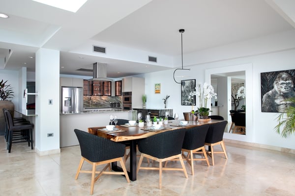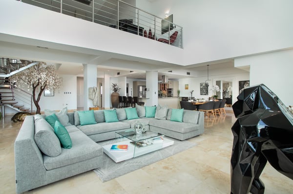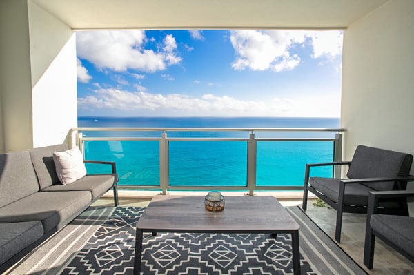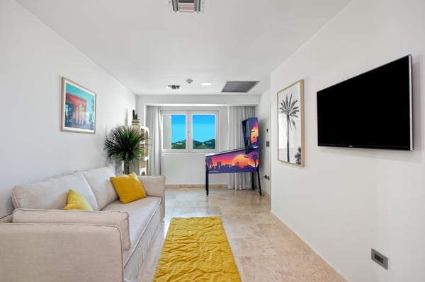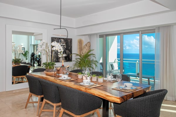 Welcome to "The Cove," a luxury beachfront penthouse nestled in the heart of St. Maarten's exclusive "The Cliff" enclave. This unparalleled residence offers the epitome of oceanfront opulence and privacy, combining the amenities of a 5-star hotel with the exclusivity of a condo. Indulge in the breathtaking 270-degree views of the turquoise Caribbean Sea from the expansive terrace—the largest on the island—providing glimpses of three countries and an exquisite white sand private beach. Witness the playful presence of sea turtles and dolphins in the crystal-clear waters, and savor the daily spectacle of the most sensational sunsets. "The Cove" is more than a residence; it's an ode to nature and the sea, adorned with captivating art throughout. With four bedrooms, each boasting a private terrace with unparalleled views of Sint Maarten, this haven offers a unique blend of luxury and comfort. Inside, discover a dedicated game room for teens featuring a pinball machine, and elevate your senses with a state-of-the-art Sonos sound system in every room. The primary bedroom even includes an en suite children's room with a double bunk bed. Venture beyond the penthouse to experience "The Cliff's" exclusive amenities, including the internationally acclaimed Mario Bistrot restaurant. Enjoy access to the best infinity pool on the island, an indoor lap pool, a kid's pool, and a fully-equipped gym with yoga and spinning equipment. For those seeking outdoor relaxation, "The Cove" offers a sauna, steam room, BBQ area, and a lush garden with serene water ponds. Just a 5-minute walk from Mullet Bay, a 10-minute drive from the airport, and conveniently located near Maho shopping, golf, Porto Cupecoy Marina, a casino, and numerous restaurants, this residence is the perfect gateway to a world of luxury and leisure. Experience the extraordinary at "The Cove."