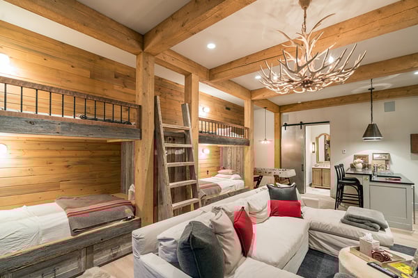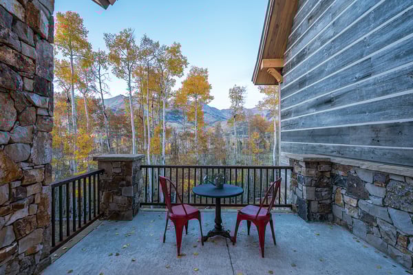 This sprawling, magnificent stone home is a dream come true, and it's beautifully situated in scenic Mountain Village. Privacy abounds, and this home is completely backed by the beautiful San Sophia Ridgeline. It's the perfect spot to bring the entire family, and there's plenty of room in the surrounding yard to get outside with the children to run, play and enjoy the clean mountain air. As an extra bonus, guests of this home receive two complimentary ski passes during each day of their stay. Beautiful blonde hardwood floors are found throughout this home, and the great room houses the living area and the kitchen space. The living area boasts a vaulted ceiling with wood beam details and large south-facing picture windows that offer exceptional views of the San Sophias. It also comes with a massive stone fireplace that is surrounded by comfortable armchairs and sofas, and a hidden flat-screen television. The gourmet kitchen is a dream with top-of-the-line Viking stainless steel appliances, including a Nespresso VertuoLine espresso machine and Cuisinart drip coffee maker, incredible custom cabinetry and plenty of granite countertops with seating for four. Guests may enjoy meals in comfort at the breakfast nook, which comes with two chairs and a leather bench. There's also a formal dining room that features a lovely table with seating for six. Beautiful French doors in the kitchen open to an amazing outdoor covered deck that boasts a stone fireplace, a nice gas grill, comfortable outdoor lounge seating and a dining table that seats six. The primary suite enjoys privacy at one end of the home, and it boasts an amazing king-size bed with a tufted headboard that is warmed by a grand oxidized metal fireplace. It also offers comfortable furnishings and excellent San Sophia views. The private primary bath includes a relaxing steam shower, a freestanding tub and opposing dual vanity sinks. A guest room that is just off of the great room offers two queen-size poster beds, comfortable furnishings, lovely mountain views and a private bath with a freestanding tub and dual vanity sinks. This pretty room is often used for the children in the group. The entire lower level of the home is taken up by an exceptional bunk room that boasts a stone wall and an antler chandelier. This room comes with two bunk beds that are made up of four twin-size beds, a large sectional sofa, a flat screen television and a foosball table. Additionally, a wet bar with two bar stools is carefully placed overlooking a lovely set of glass doors. This room also features a private bath with an unusual sliding barn door entrance, and it offers a shower and dual vanity sinks. French doors open from this room to a lovely deck with a private hot tub, which is sure to inspire romance while soaking beneath the starry sky. Perfect for any couple who would enjoy a little extra privacy, this guest house has everything that could possibly be needed. The living area offers comfortable seating and a flat-screen television, and the neighbouring kitchenette comes with a two-burner stove, toaster oven, Mr. Coffee drip coffee maker, mini fridge, dishwasher and a rolling kitchen island. The bedroom offers a beautiful reclaimed wood wall, an ultra-cozy queen-sized bed with a leather headboard and a private bath with a glass shower/tub combo. Petra Domus is large enough to house 10 people in absolute luxury and comfort, and it may be the very best vacation residence in all of Mountain Village TMV BL# 005628