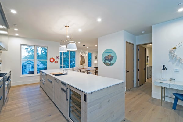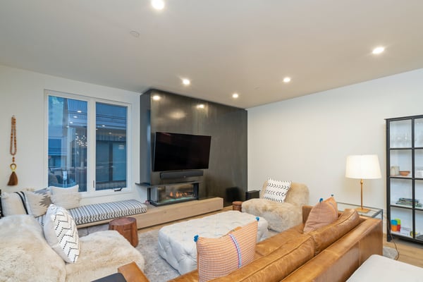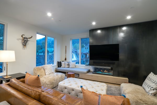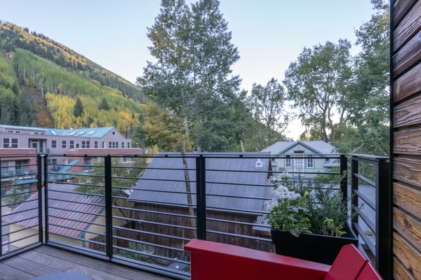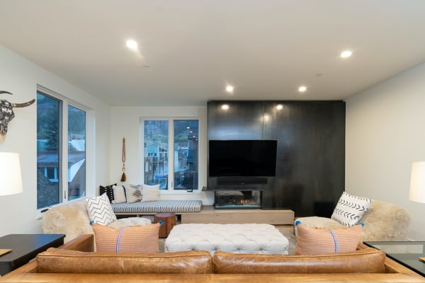 Nearby construction may result in noise disturbances. For further details on how this might affect your stay, please reach out to a villa specialist. Welcome to San Juan 103 at Transfer, a luxurious home in one of Telluride's most desired areas. Located in a rustic yet modern downtown building with dramatic steel archways, this sprawling condominium is divided into two exquisite levels. The home is newly constructed and designed with carefully curated furnishings and hand-picked local artwork that accentuates the gorgeous space. Conveniently located close to the gondola and all the cafes and boutiques of downtown Telluride, a stay at San Juan 103 at Transfer strikes the perfect balance of chic city living and private mountain escape. The main level living space is bright and spacious. A soft leather sofa and two faux fur armchairs face a modern electric fireplace with a slate-black facade. Your whole crew will love to kick back here with a glass of wine after a day on the trails, while the fireplace glows in the background. Large windows allow for views of the mountains and the bustling city below. A powder room has rustic stone tiles, a back-lit vanity mirror, and a marble bowl sink. Around the corner, the contemporary kitchen features custom cabinetry topped with spotless white quartz countertops. A chef-worthy gas range and commercial vent hood anchor the space. Floating open shelves are mounted against a backsplash of modern stacked subway tiles. Outside on the patio, there's a gas range for grilling juicy burgers for dinner. A spacious bar has plenty of seating and will be the place where everyone lingers over fresh coffee in the mornings while you plan your day on the trails. The main level primary suite has a sumptuous king-size bed set in a blonde wood frame. Crisp white linens are draped with indigo-blue accent pieces. The elegant attached private bathroom has a floating vanity with double sinks, a freestanding marble soaking tub, a water closet, and a step-in shower. On the lower level, two more bedrooms and a secondary living space provide plenty of square footage for your whole group. The cozy den has a sleeper sofa, armchairs, and a flatscreen television. The first bedroom is like a secondary suite- complete with a plush king-size bed and private full bathroom. The second bedroom has a flexible mix of a twin-over-twin bunk bed, a queen-size bed, and an attached full bathroom. A convenient laundry nook is also located on this level. For fitness enthusiasts, San Juan 103 at Transfer includes a workout studio complete with weights, a treadmill, an elliptical trainer, and a Peloton bike. A heated, private parking garage ensures you are able to park your car and forget about it during your stay, regardless of what mother nature brings. San Juan 103 at Transfer is a Rocky Mountain retreat that will exceed all of your expectations. Art lovers will delight in the neighbouring Transfer Warehouse- the home of the arts and the heart of the Telluride community. This bespoke holiday home has everything you need for a classic Colorado getaway, including breathtaking views of the mountain peaks and ski lifts combined with easy access to all the excitement of downtown Telluride. TOT BL# 00671