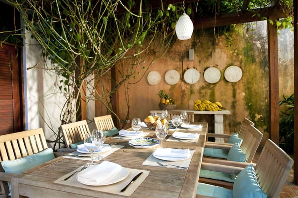 Located on the grounds of the former Dominican Monastery, the original structure dates to the Spanish colonial era. It has been completely renovated and decorated with antique maps and plantation-style furniture for a colonial-tropical ambiance. The distribution of the rooms flows into the patio with its lush vegetation and swimming pool. The house has three Luxury Superior bedrooms, each with its own bathroom and walk-in closet. All are decorated with a particular theme with furniture and artwork from local artists. In the living area, blue and white curtains open to the dining room and open kitchen, an ideal space for gathering and cooking demonstrations. The interior is decorated with maps depicting the exploration of the Spanish colony. Its tropical-colonial atmosphere transmits the past and is suited for today’s lifestyle.
