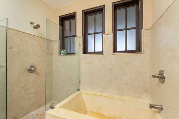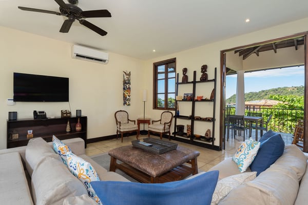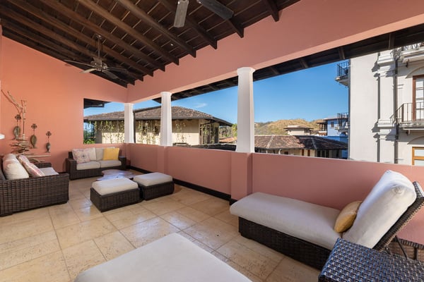 Nearby construction may result in noise disturbances. For further details on how this might affect your stay, please reach out to a villa specialist. Everything you need for a great vacation is within a short walk through the extraordinary beauty of this beach town. This makes for an experience that is lively and sociable, in touch with nature, and radically different from anything else you will find in Costa Rica. 38 Avenida la Antigua is a part of the Avenida la Antigua Flats, which overlooks the pedestrian Plaza Lucía and has a sunset-facing view over the rooftops towards the Catalina Islands. The spacious flat has two main areas, one for coming together with each other and another for rest and relaxation. For communal space, a great room with a covered terrace provides an area for lively gatherings. The open floor plan includes lounge seating, a kitchen, dining room, and covered terrace with a grill that is perfectly suited to spending meals and time together throughout the day. When there is a need for peace and quiet, a separate area just for bedrooms offers a place to rest after days spent exploring town. This back wing of the home is dedicated to personal spaces, and includes a guest bedroom with two day beds and a trundle, a queen-base bunk room, and a primary bedroom with a covered terrace. A washer and dryer to rinse gear and do laundry complete the necessities of 38 Avenida la Antigua, resulting in a home that’s fully equipped for meals, social time, and relaxation during your stay in this lively beach town. Step outside the flat for beach barbecues, hikes in the tropical dry forest trails, and catamaran citizen science excursions all waiting just outside your door. Avenida la Antigua Flats building is surrounded on both sides by two car-free plazas, Plaza Lucía and Plaza Escondida. It has two shared spaces, a pergola on the top floor with open views to the ocean, mountains and town, and also a charcoal grilling and outdoor lounging area.