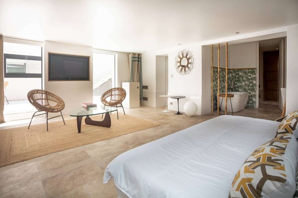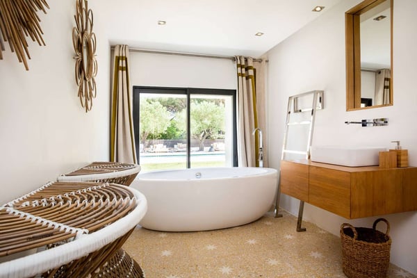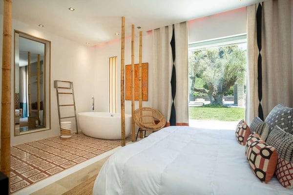 Located amongst the rolling hillside, wineries, and lavender fields of the French Riviera, Villa Grande is a secluded and spacious property, just far enough from the bustling city of Saint Tropez to visit within a short drive, yet enjoy the utmost privacy of the countryside. With luxurious accommodations for sixteen and plenty of indoor/outdoor hosting space, this recently restored and redesigned villa filled with modern art is the perfect setting for a special event, destination wedding, or family reunion. Villa Grande's breathtaking estate is ideal for large groups thanks to its numerous lounge areas, swimming pool, and private gardens. There's always somewhere to find a space to break away for more intimate moments, as well as full group gatherings.