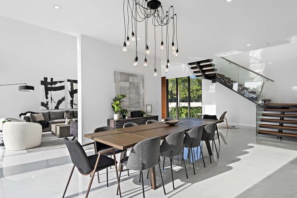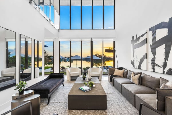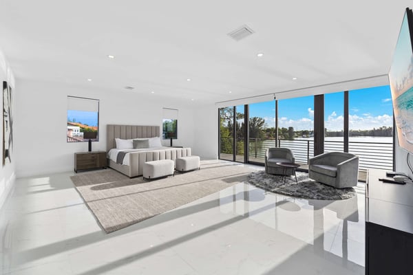 Stunning brand new modern lakefront home with high ceilings, open concept, an abundance of natural light coming through the floor-to-ceiling impact windows throughout, 24,600 sq ft lot, including the slope of the land and portion that extends into the lake. Perfectly located in the center of Miami, with sunset views over a tranquil view of earth and water. With a total of five Suites, two suites on the main floor with a living room, dining room, family room, and guest powder room. A large primary bedroom, bathroom, walk-in closet, and balcony with an extraordinary view of the lake are on the second floor, with another two suites and a large loft. Open floor plan, large kitchen with top-of-the-line appliances, extraordinary finishes throughout, infinity pool, and lake views from all rooms.