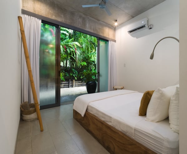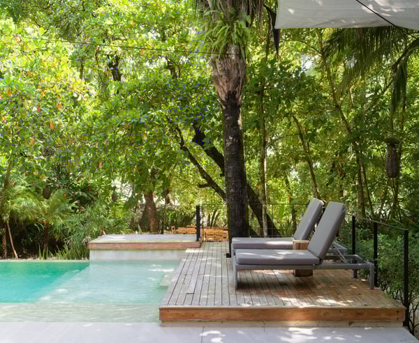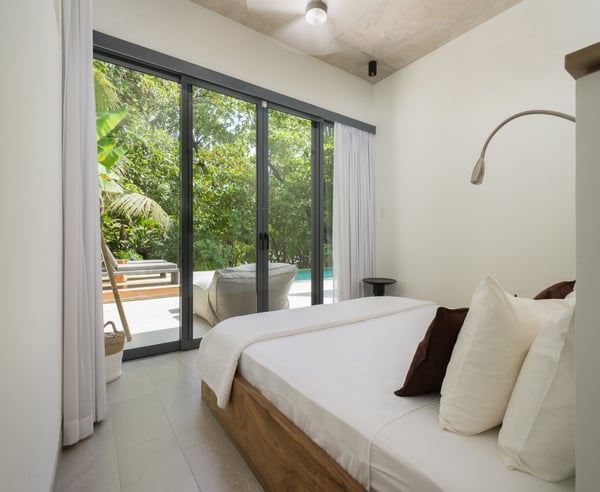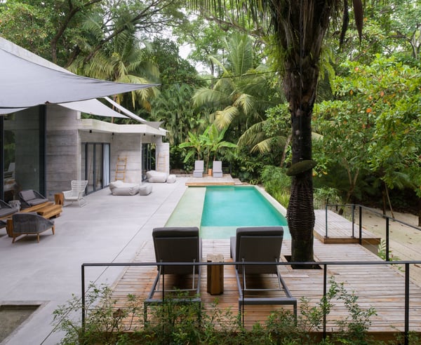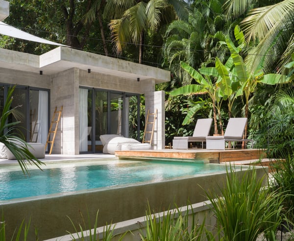 Casa stands for “home” in Spanish, and Lanui means “holiday” in Hawaiian. We guarantee you precisely this experience - a holiday of a lifetime. Casa Lanui’s design is modern, classy, and hippie chic, ensuring you will feel at home away from home. This beautiful villa is located in the northern, most exclusive part of Santa Teresa, with direct access to the white-sand beach and some of the most consistent waves in Costa Rica, making it a surfer’s paradise. This 7-bedroom, 7.5-bathroom villa comfortably accommodates large families or groups of friends in a unique and private location. Casa Lanui is part of North Creek Estate, sharing the property with Casa Taman (4 bedrooms, 4.5 bathrooms). Both houses can be rented separately or together for large groups, accommodating up to 28 guests combined. Casa Lanui features three primary bedrooms with ocean views, one primary bedroom with a garden view, and two kids’ bedrooms, each with two bunk beds, accommodating a total of 8. Additionally, there is a separate studio with a king-size bed, full bathroom, and kitchenette, ideal for accompanying staff or guests seeking more privacy. This studio has features that make it accessible for people with disabilities. The enormous living area can be entirely opened towards the pool, deck, and beach. This area includes a fully equipped kitchen and preparation kitchen, with plenty of seating at the kitchen island and a console-style table for 8-10 people. The dining area includes an 18-foot-long table that comfortably seats 20 people. The cozy lounge area is perfect for relaxing and includes a 60” television On the terrace, enjoy the infinity-edge pool with shallow hang-out areas, surrounded by several lounge chairs for tanning and enjoying your favorite drinks with friends and family. There is also an outdoor area with a massage, yoga, and workout area. The spacious area between the house and the beach is naturally shaded by native trees and includes lounge chairs and hammocks. There is a large dining table located close to the beach where guests can enjoy cocktails or dinner with an amazing tropical sunset view. The white sand beach in front of North Creek Estate is beautiful. You can relax in full privacy in the shade of numerous trees while watching some fantastic, consistent surf or one of the world’s most beautiful sunsets.