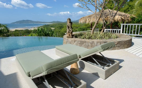 Situated in the beach town of Tamarindo, this spectacular house overlooks the breathtaking blue waters of the Guanacaste Pacific Ocean and the estuary. As its name suggests, Sunset House is the perfect spot to take in the beautiful Guanacaste sunsets. Sunset House’s indoor-outdoor tropical living plan showcases five beautiful bedrooms and an infinity pool that wraps around the terrace, offering breathtaking views of the ocean and the estuary. This villa sleeps 14 guests in comfort and style and it is an ideal luxury retreat for families, friends, wellness travelers, retreats, wedding groups and private corporate groups.