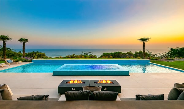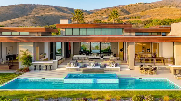 Malibu Beach Oasis is a brand new, custom contemporary luxury retreat, in Malibu's premier resort-style community. Enter a gated private driveway leading to this architectural masterpiece situated on a one acre bluff perched above the Pacific Ocean. A stunning double-height glass entry opens to a spectacular great room overlooking unobstructed head-on ocean views, sleek gourmet kitchen, separate chef's kitchen, state-of-the-art theatre, gym, and sauna. Five well-appointed bedrooms all with ensuite bathrooms are located in the main part of the villa. The primary bedroom opens to its own separate private outdoor hot tub. The primary bathroom opens to a lush outdoor area giving guests that true indoor/outdoor California feel. A private casita space is located with its own entrance and a beautiful sitting area and ensuite bathroom. Malibu Beach Oasis is located within walking distance to one of Malibu's favourite spots for local surfers, and a quick drive down the PCH is the famous Zuma Beach.