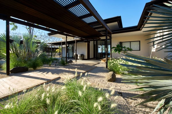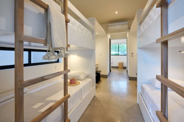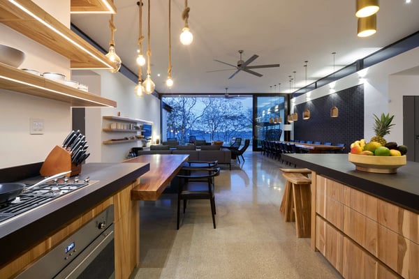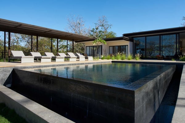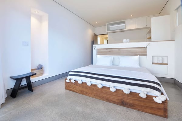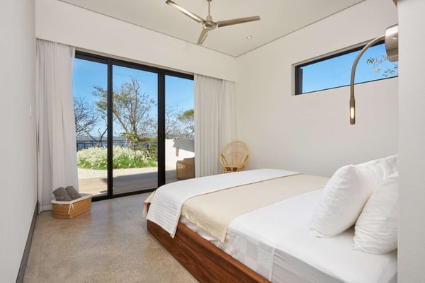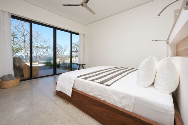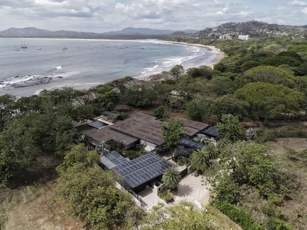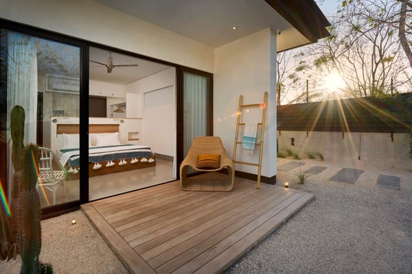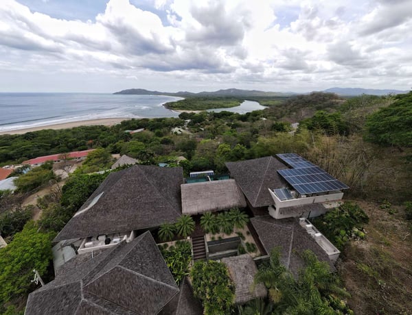 This 8-bedroom, 8.5-bathroom luxury villa comfortably accommodates big families, wedding groups, retreats, or groups of friends in a unique and private location. Morabeza is both a word and a concept, a lifestyle, a way of seeing and understanding things and life. The word says it all, namely open spirit, welcoming, hospitable, relaxed, and all the good things. It is, in a way, very similar to what the word ‘aloha’ means to Hawaiian islanders. This villa’s location is unique as it offers direct access to the beaches of Tamarindo and Playa Langosta (less than one minute's walk!) and a short 3-minute drive to town. Villa Morabeza comfortably sleeps up to 20 people in comfort and style featuring four primary bedrooms with ocean views, one guest bedroom with an internal patio view, and two kids’ bedrooms, each with double bunk beds. Some bedrooms have outdoor showers with ocean views. There is a separate studio, adjacent to the villa with a queen size bed, full bathroom, table and kitchenette, ideal for family members who want privacy or staff visiting with you (babysitters, chefs, etc.) The spacious living areas can be opened entirely towards the terrace, pool, and ocean view. The social area includes one big fully equipped kitchen and preparation kitchen, an island, and additional sitting at an integrated table. The dining area includes an 18-foot-long wooden table that will comfortably seat all 20 guests. The very large outdoor terrace includes lounge areas around the pool and a second dining table in front of the beach with spectacular views perfect for enjoying a cocktail while viewing an amazing sunsets.