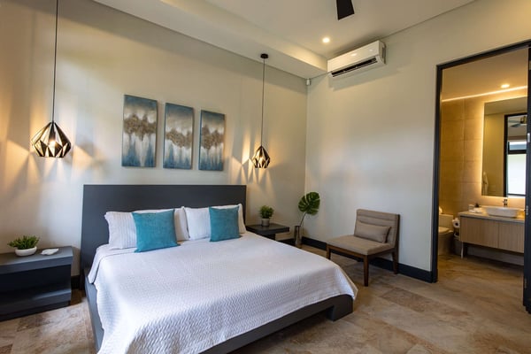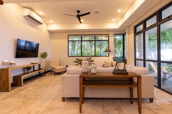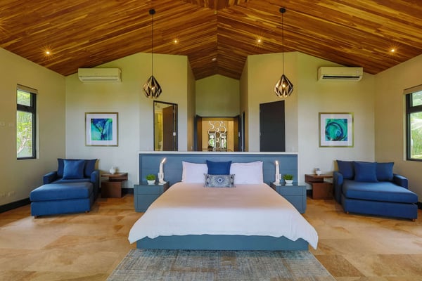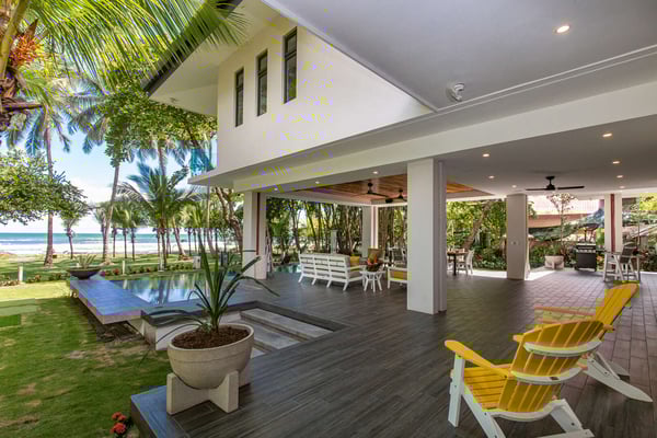 Villa Panacea is Esterillos' newest beachfront luxury home. This brand new beautiful villa is complete with privacy, amenities and luxurious interiors. In addition to interesting architectural details, this gorgeous villa enjoys a prime location! Listen to the sound of the waves crashing right outside your master bedroom balcony or on your large back terrace complete with outdoor living, dining and barbecue. Villa Panacea boasts five large bedrooms and four and a half baths, making it perfect for a large group or a family who wants to enjoy time on the beach. There are multiple cafés and restaurants located just down the beach in both directions and several daily happy hour locations that are popular with visitors. Manuel Antonio is just 30 minutes south and Jaco is just 15 minutes north. Come and see for yourself why this home embodies tropical living at its finest! Side by Side Rental Property, you can rent Villa Oceana, Villa Panacea and Villa Victoria all together to accommodate a larger group.