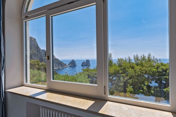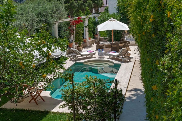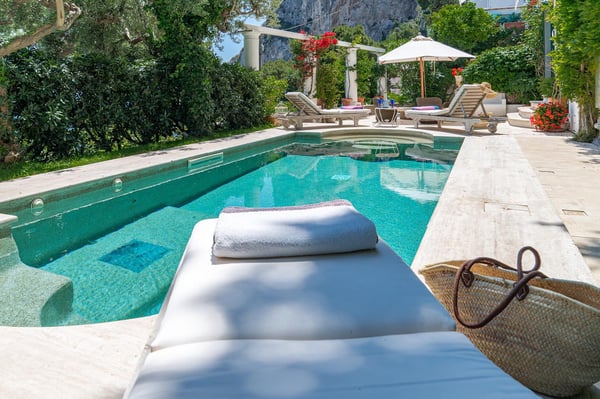 For a sun-drenched spree on Capri, you cannot beat the location of the elegant villa Litodora! This luxurious villa overlooks the Faraglioni – the wondrous geological formation that rise up from the sea and create the most iconic view of the isle of Capri. Litodora is located at short distance away from the Piazzetta – the heart of this chic island destination, a quick 15-minute walk to the beach, and just a few steps from markets, restaurants, banks and bars. Surrounded by luxuriant gardens, rich with flowers and Mediterranean vegetation, the two-story property is furnished with elegance and charm. From the villa spacious rooms, you can marvel at the sea views, or, in the garden, indulge in a drink nearby the pool. Go ahead, you deserve it! CIN: IT063014C2RTTB6RV5