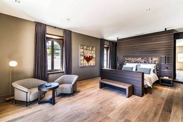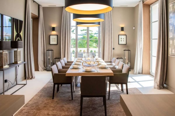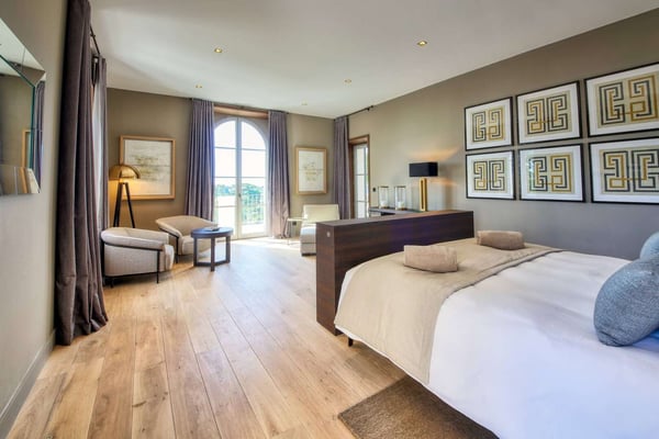 In the heart of the Var, between land and sea, Sylvabelle 11 offers breathtaking sea views and is set in of an exceptional 10 hectares of preserved natural area near Saint-Tropez and the famous beach of Pampelone with its Club 55. Located in a Private Estate, the Villa has been designed for families looking for serenity and authenticity. A principal residence and two outbuildings fully restored, with decoration perfectly in line with the history and the atmosphere of the Private Estate, dating late 80s, combining modernity and Provencal charm. Sylvabelle 11, with its 11 spacious bedrooms, all with en-suites, is fitted with the most luxurious materials and top-of-the-range technology. The grand drive leads up to the main house where the ground floor houses a large lobby, bar area, dining, living room, television room, and state-of-the-art kitchen. There are several balconies and terraces to enjoy the seaview while having a nap, taking in the sunrays, or have a coffee on the lower terrace. The other two buildings house another six luxury bedrooms, a fully fitted kitchen, a gym, massage room and jacuzzi. The heated pool is located in a secluded area with a fully equipped kitchen, dining room, alfresco bar tables and stools, sun lounges, hammock and summer lounge so guests can enjoy it through the day and evening. To perfect your stay, the Estate offers a top-of-the-range service!