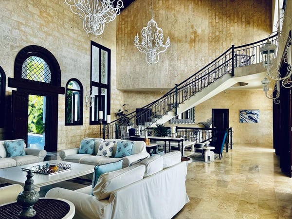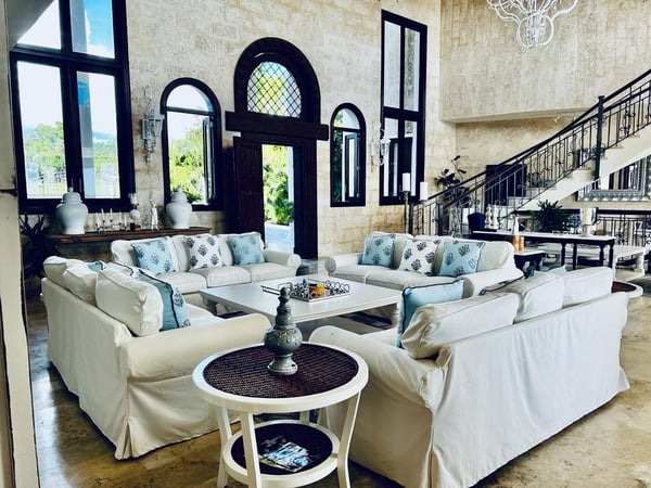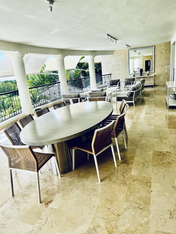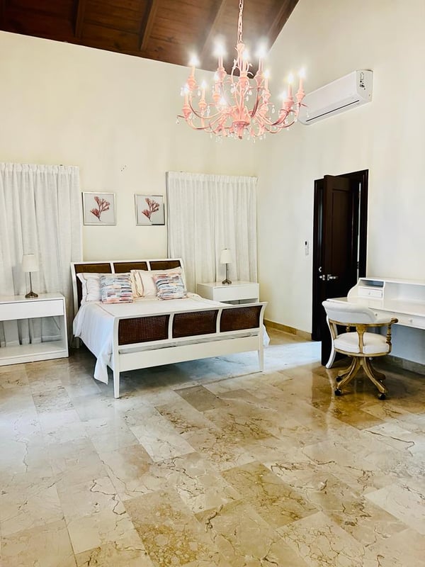 All guests must register with the Casa de Campo Concierge office, and for a small daily fee ($30 per adult per night & $15 per child per night), are granted access to resort areas and amenities. Casa de Campo Resort facilities and amenities include golf courses ($), the fitness centre ($), racquet center ($), restaurants ($) and bars ($). Contact Rental Escapes for more information about pricing. This sophisticated villa with wide open spaces is the perfect Caribbean hideaway. Decorated with modern furniture, plenty of seating area, and the large gazebo is ideal for barbeque gatherings all while enjoying the cool breeze and a splash in the pool.