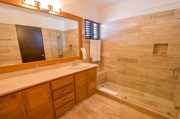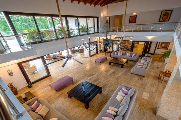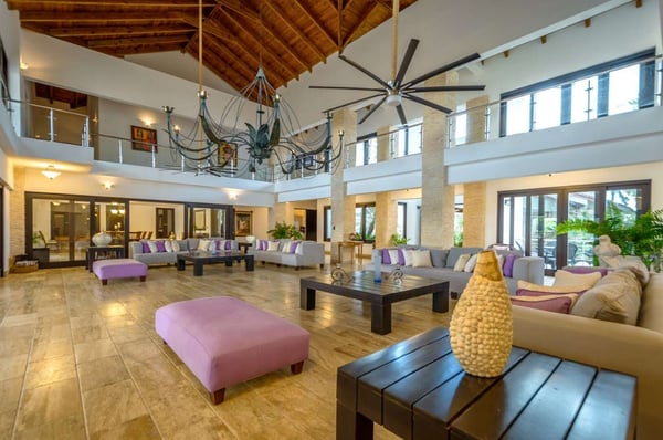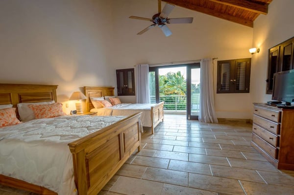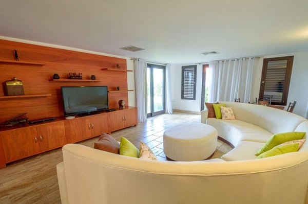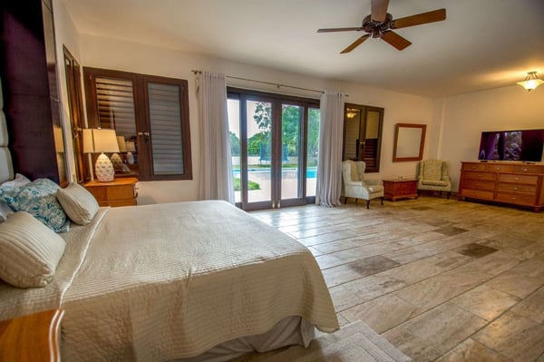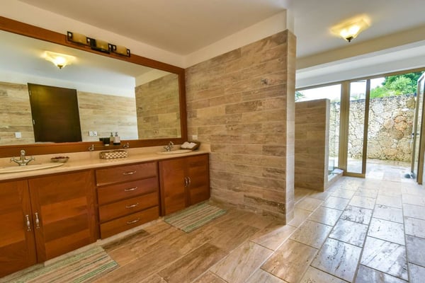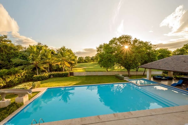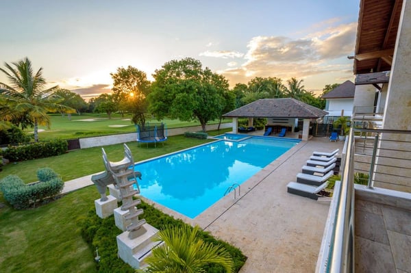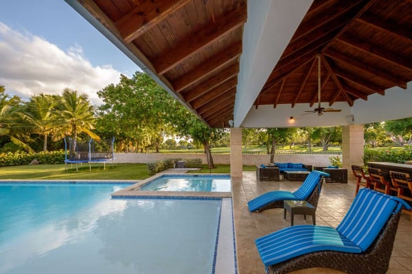 All guests must register with the Casa de Campo Concierge office, and for a small daily fee ($30 per adult per night & $15 per child per night), are granted access to resort areas and amenities. Casa de Campo Resort facilities and amenities include golf courses ($), the fitness centre ($), racquet center ($), restaurants ($) and bars ($). Contact Rental Escapes for more information about pricing. This gorgeous two-story villa features an elegant contemporary style, with a large pool and jacuzzi this is your ideal spot for a getaway. The villa has large open spaces, as well as indoor and outdoor dining options, great for entertainment.